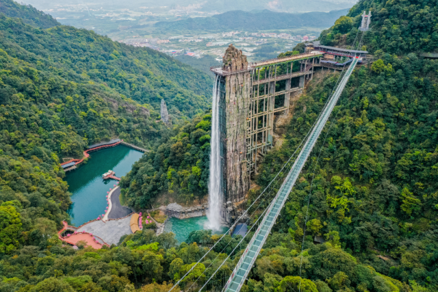 云门山景区坐落于世界过山瑶之乡——韶关市乳源县境内,地理位置优越,交通便利。景区内森林植被覆盖率高达89.3%,奇峰林立、古木参天、山花烂漫,空气清新,珍贵野生动植物品种丰富,全年林中溪水潺潺。目前景区建有高空全景玻璃桥、云上飞瀑、客运索道、生态步道、水上乐园、海洋公园、机动游乐园、冰雪世界、百亩花海、萌宠乐园、植物迷宫等众多游玩体验项目。