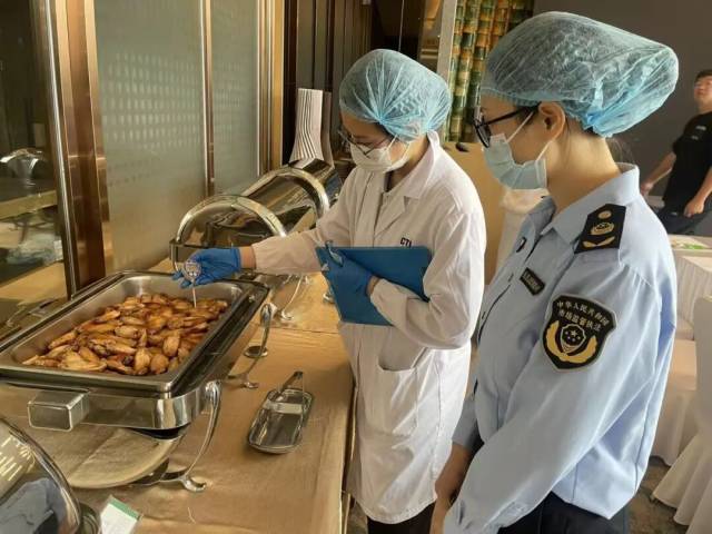 监管人员前往酒店,对食材接收、加工制作、食品留样等环节开展监督检查。
