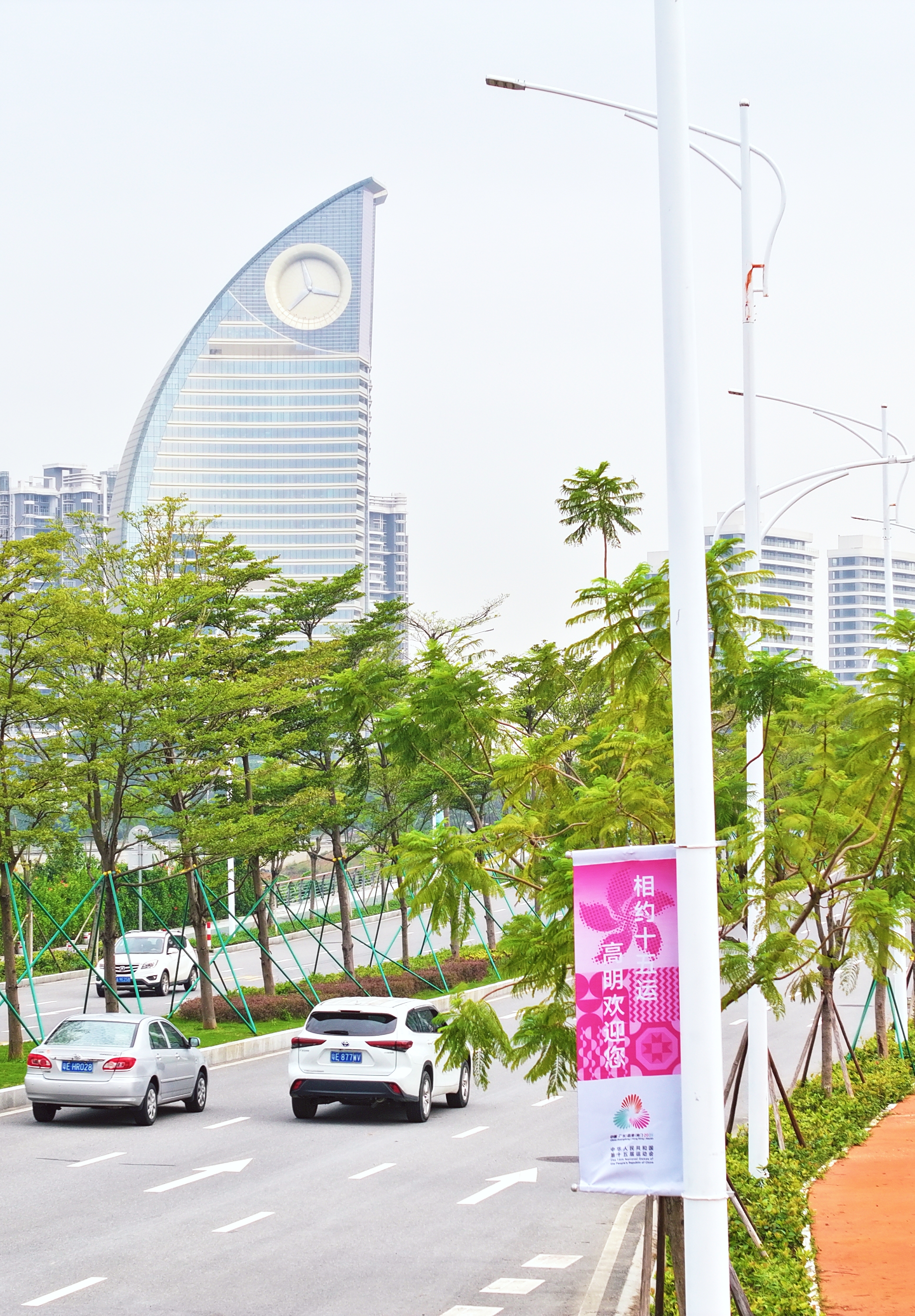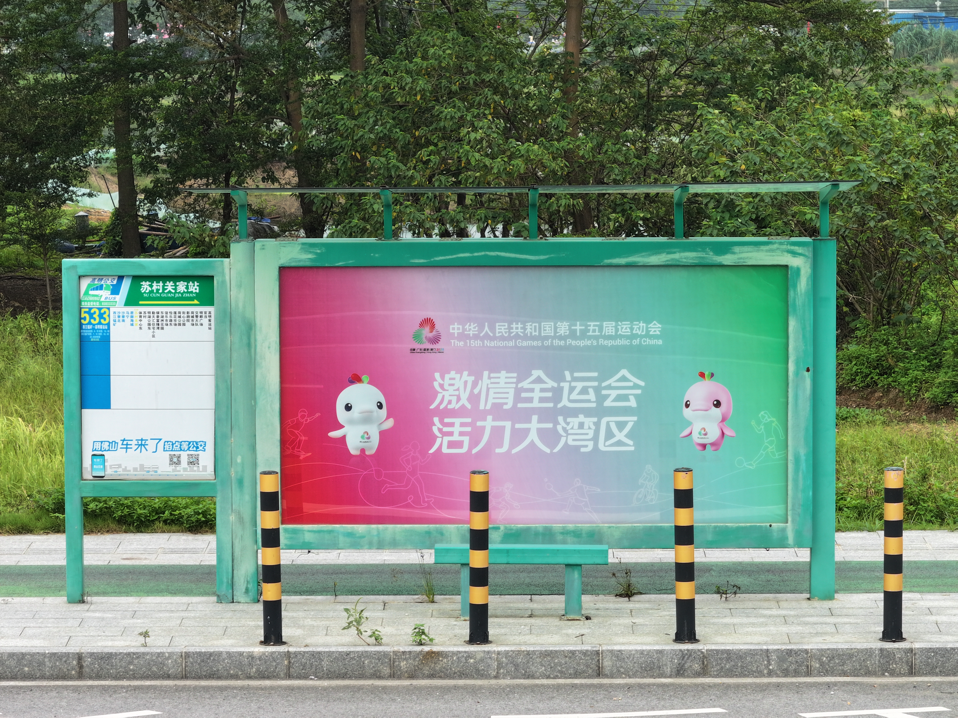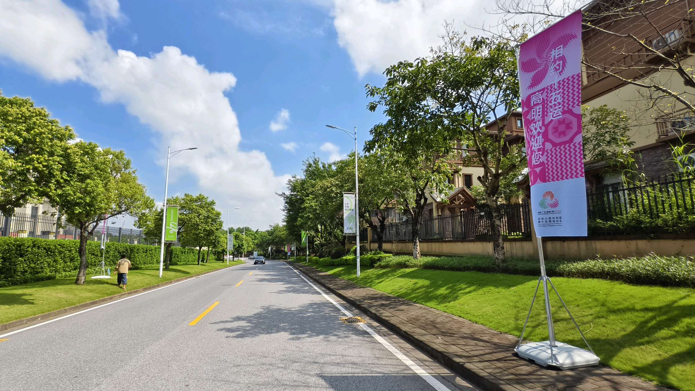 除了室内外电子屏的轮番展播宣传,高明还在高速出入口设置门户广告牌,并在区内7座人行天桥悬挂宣传标语横幅,在道路重要节点、车站张贴海报、墙壁宣传画等350余幅。醒目的文字标语、精美的主题海报成为一道道亮丽的风景线,欢迎着八方来客。荷富大道、秀丽路、苏河路等城市重点区域主次干道均精心布置,印有全运会标识、标语的道旗整齐排列,随风飘扬,像是一条条绚丽的彩带,串联起城市的体育热情与活力。