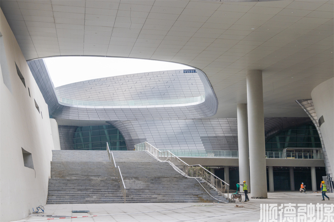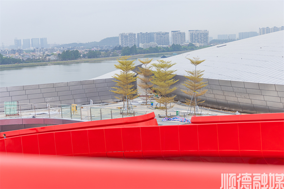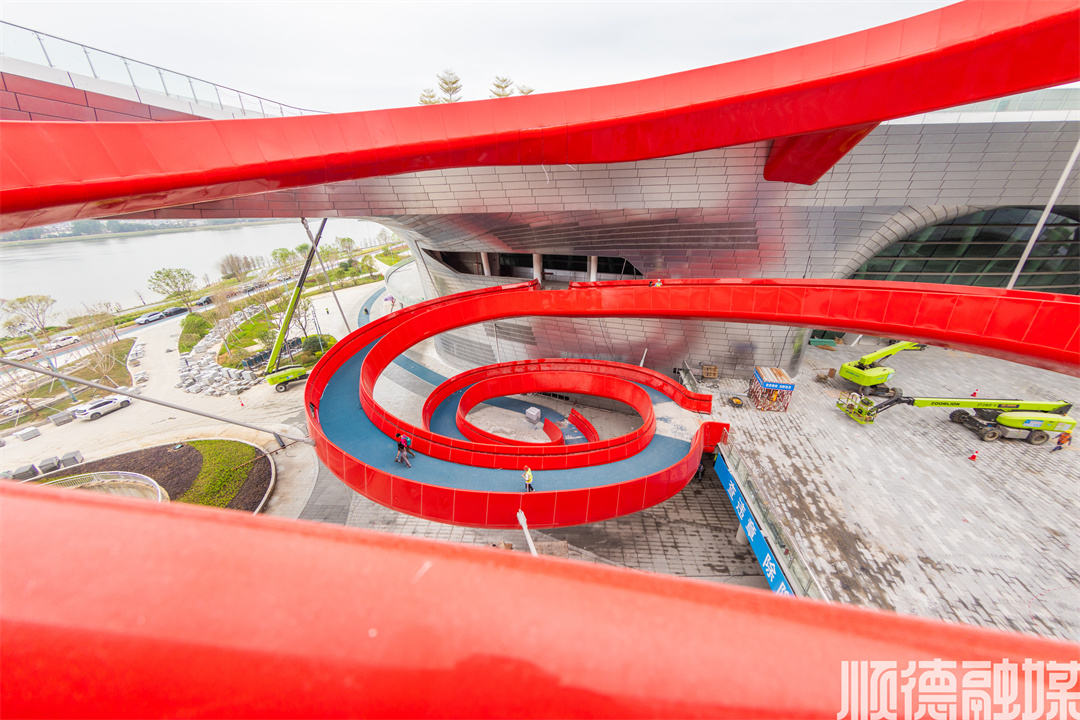 设计师利用参数化建模技术,精准平衡力学结构与美学表达,使建筑既具磅礴气势,又蕴含东方哲学韵味。夜幕下,螺旋坡道在灯光映衬下宛如扎根本土的文化图腾,彰显顺德“敢为天下先”的城市精神。