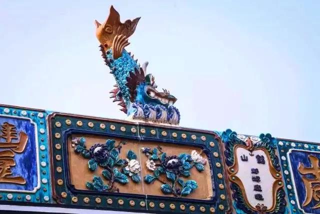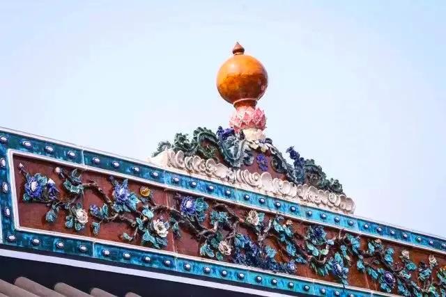 莲峰书院(屋顶瓦脊,2020 年新制石湾陶塑,蓝绿金三色,位于禅城区松风路)