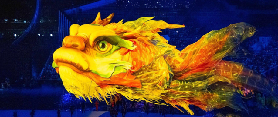 “哇!那是真的鳌鱼吗?太灵动了!”11月9日晚,第十五届全运会开幕式现场,当璀璨灯光渐暗,一条长达12米的金色鳌鱼突然从场馆上空缓缓 “游” 出,128块可独立编程的LED鳞片随《岭南春早》的旋律交替闪烁出朱红、明黄、靛蓝等色彩,鱼鳍与鱼尾在机械传动下灵活摆动,仿佛真的在云海中穿梭。