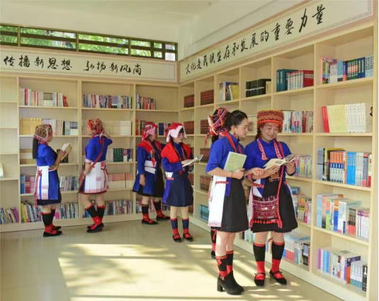 (瑶族群众在书屋享受精神食粮)