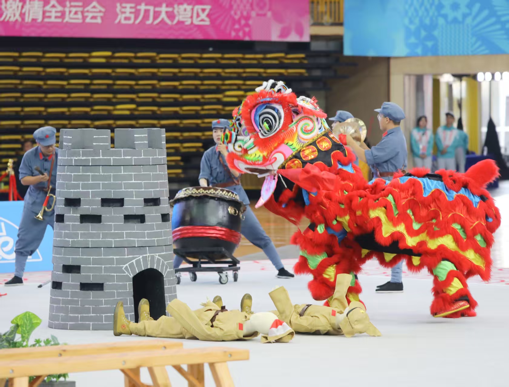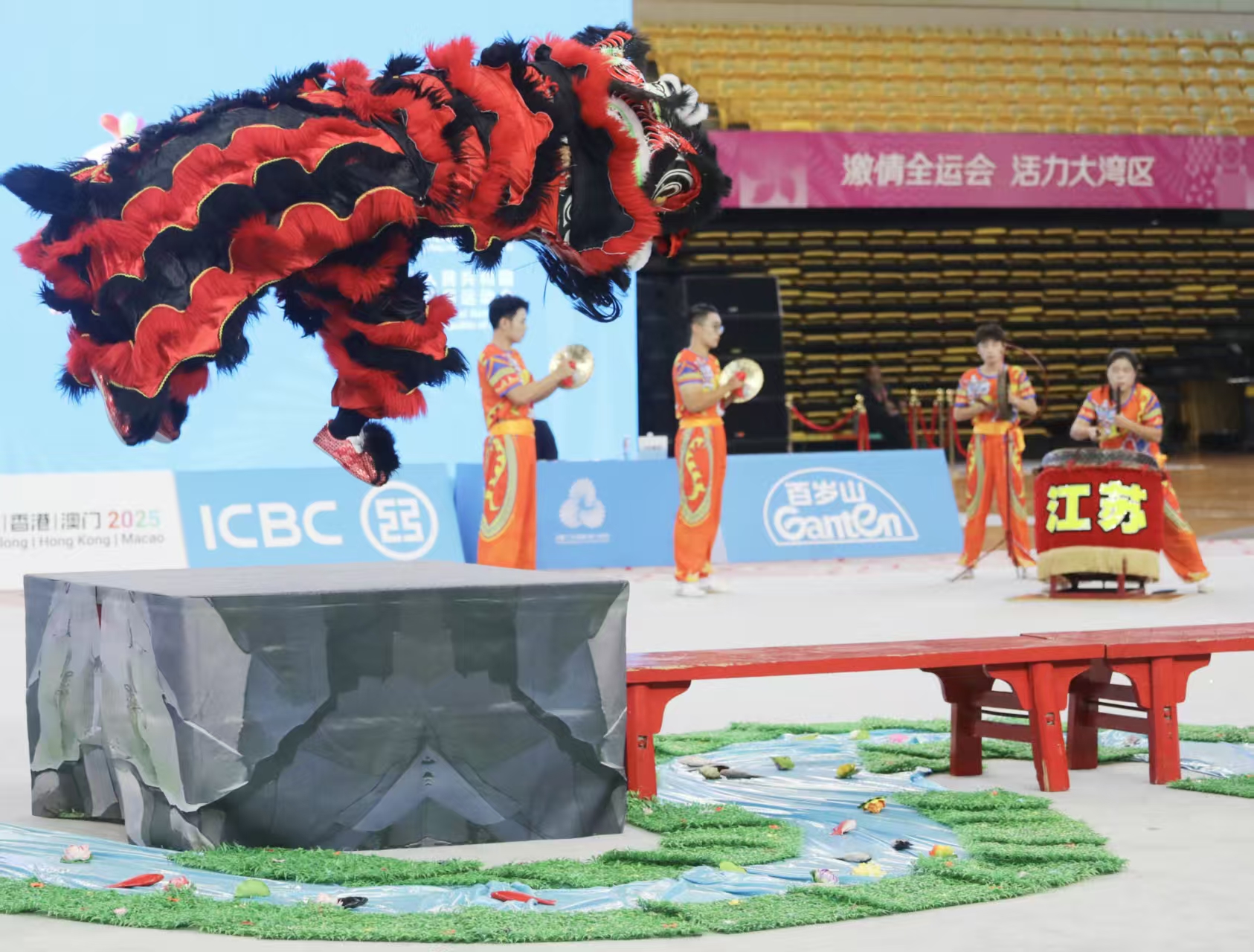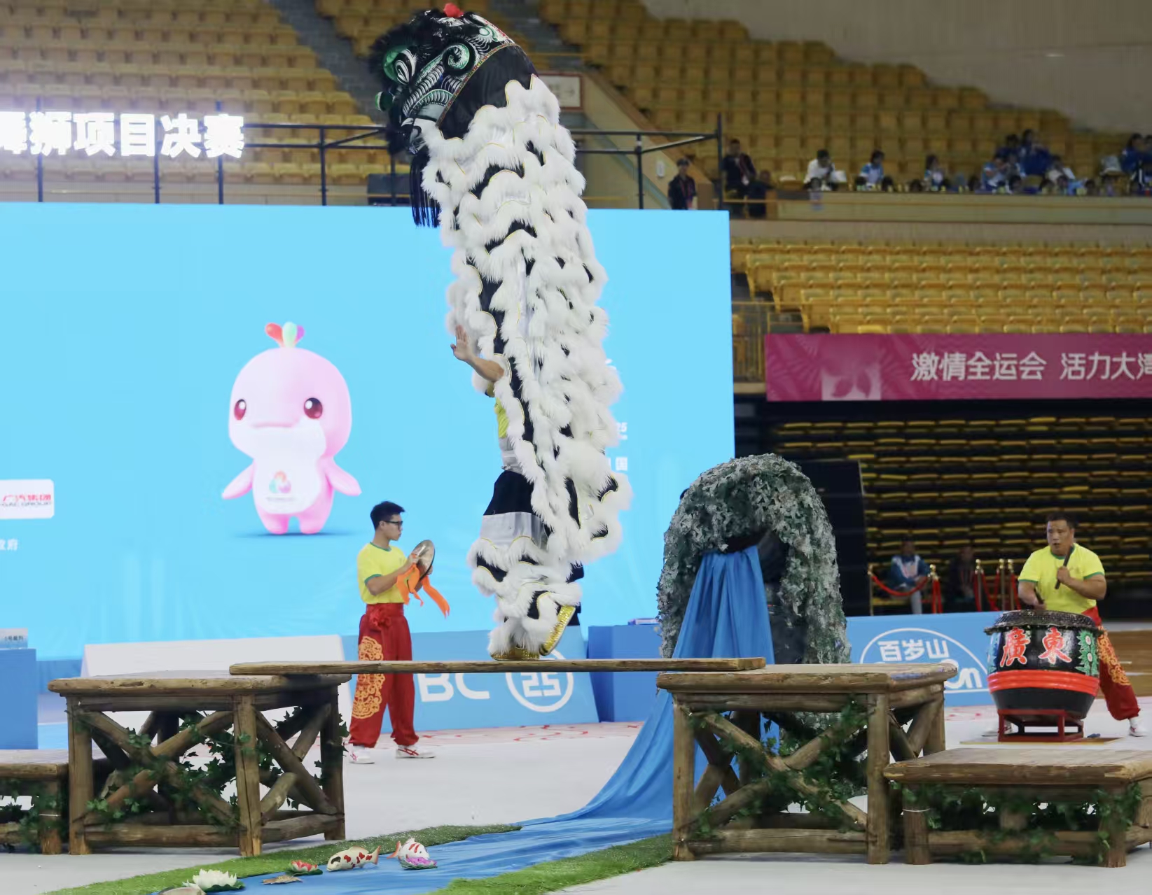 11月13日下午,十五运会群众展演舞龙舞狮项目南狮传统决赛在佛山岭南明珠体育馆开赛。选手们驾驭色彩艳丽的醒狮,在桩阵间腾跃翻滚、采青纳福,惊险动作引得观众阵阵喝彩。这项首次亮相全运的非遗项目,既展现了南狮的传统韵味与竞技魅力,更成为传承岭南文化、凝聚民心的生动载体。