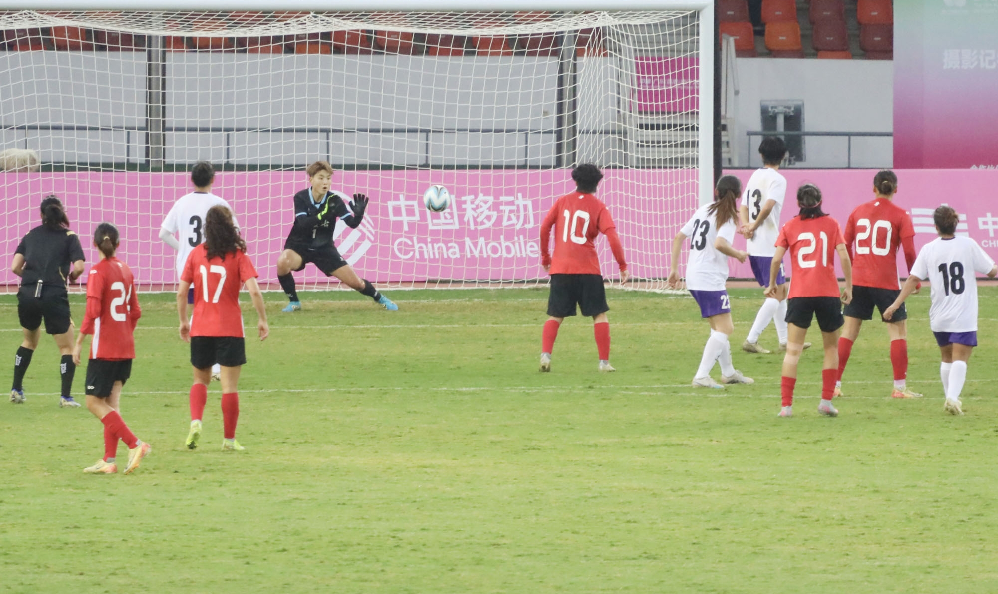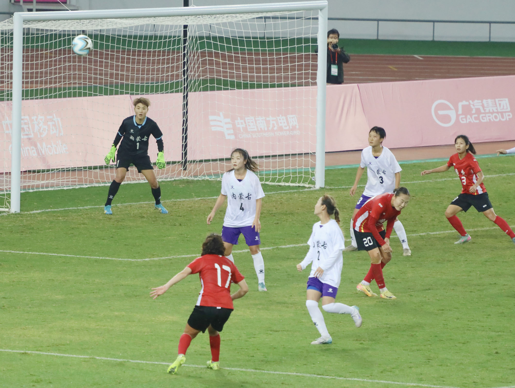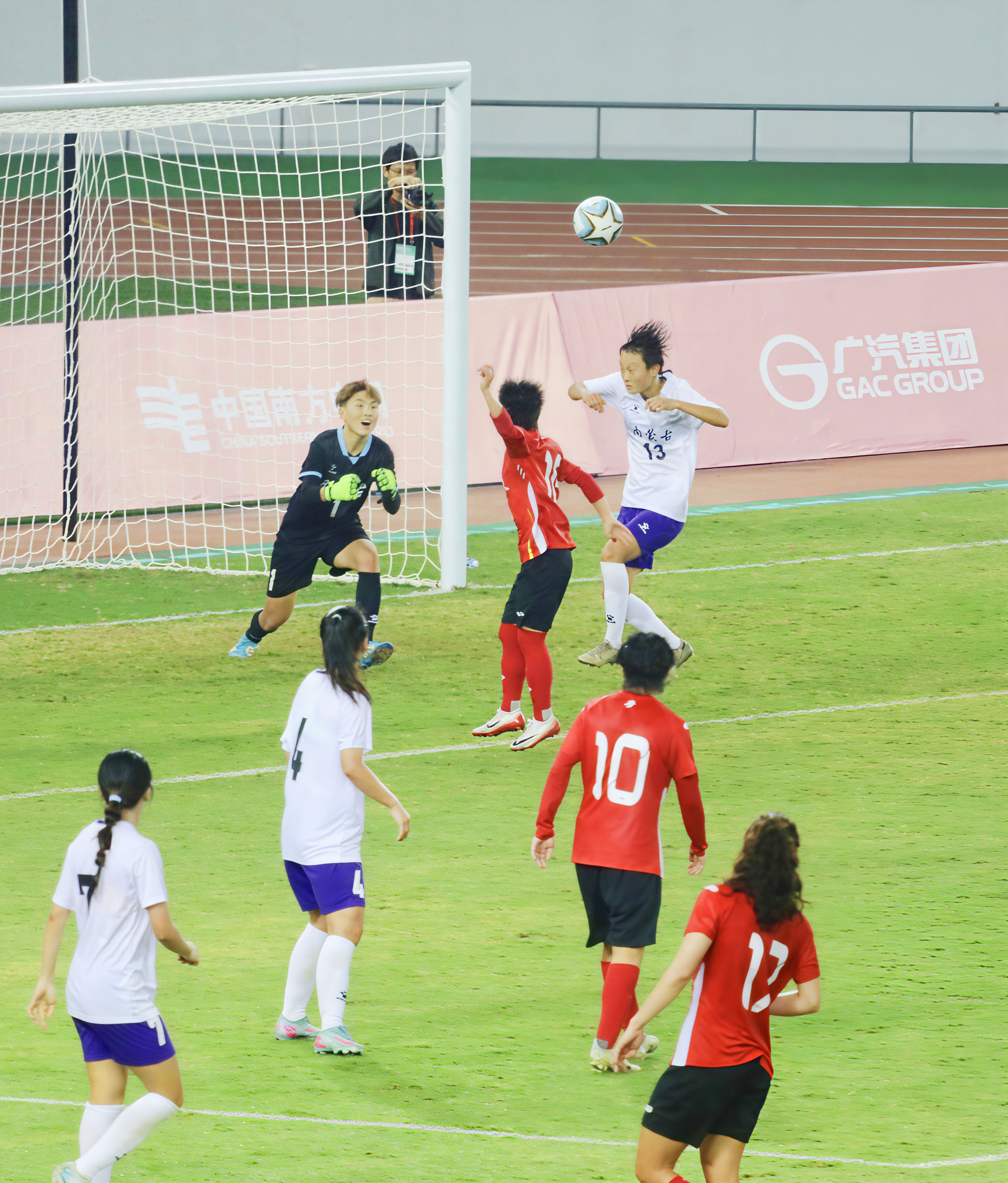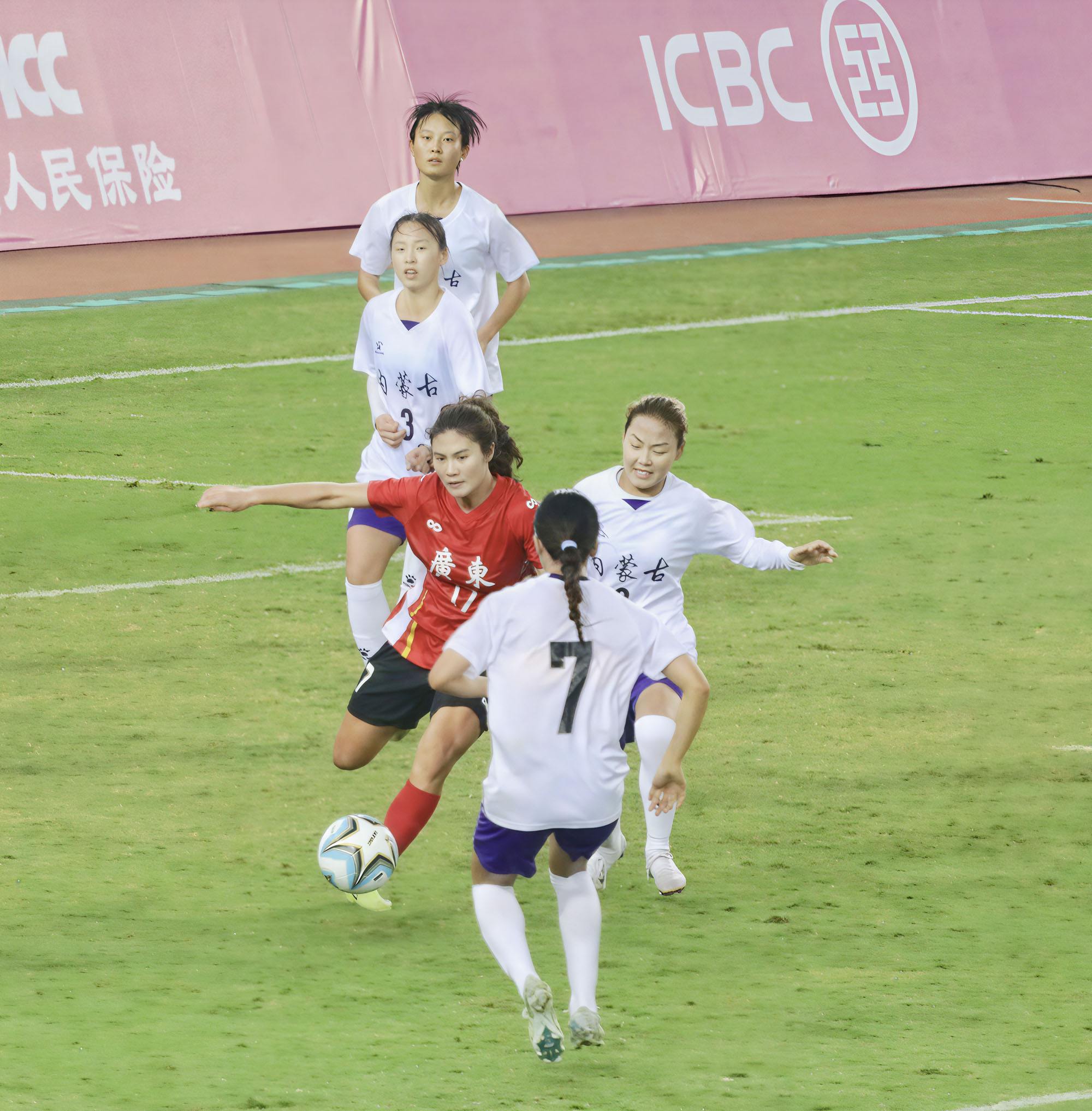 11月4日,十五运会女足成年组比赛在佛山世纪莲体育中心开踢,东道主广东队迎战内蒙古队。现场球迷助威声不断,广东队开场20分钟便由26号球员破门领先。下半场广东队攻势更盛,连入三球扩大比分,最终以5:0大胜对手,斩获小组赛开门红。