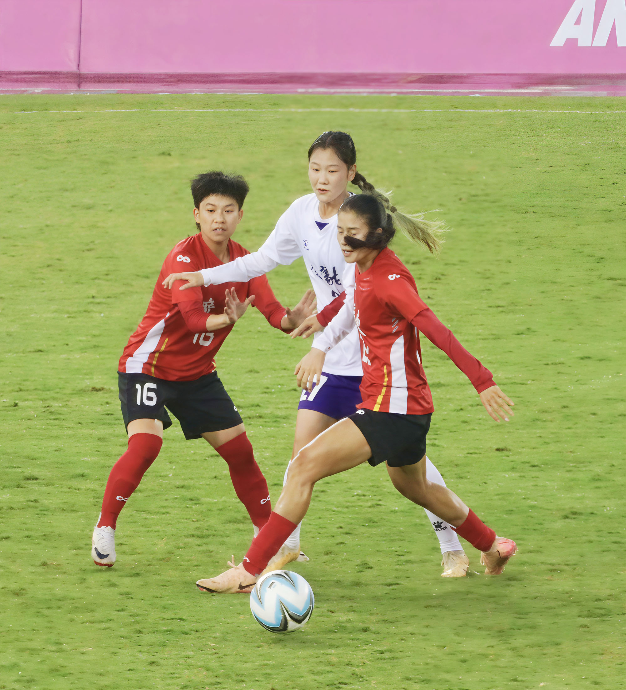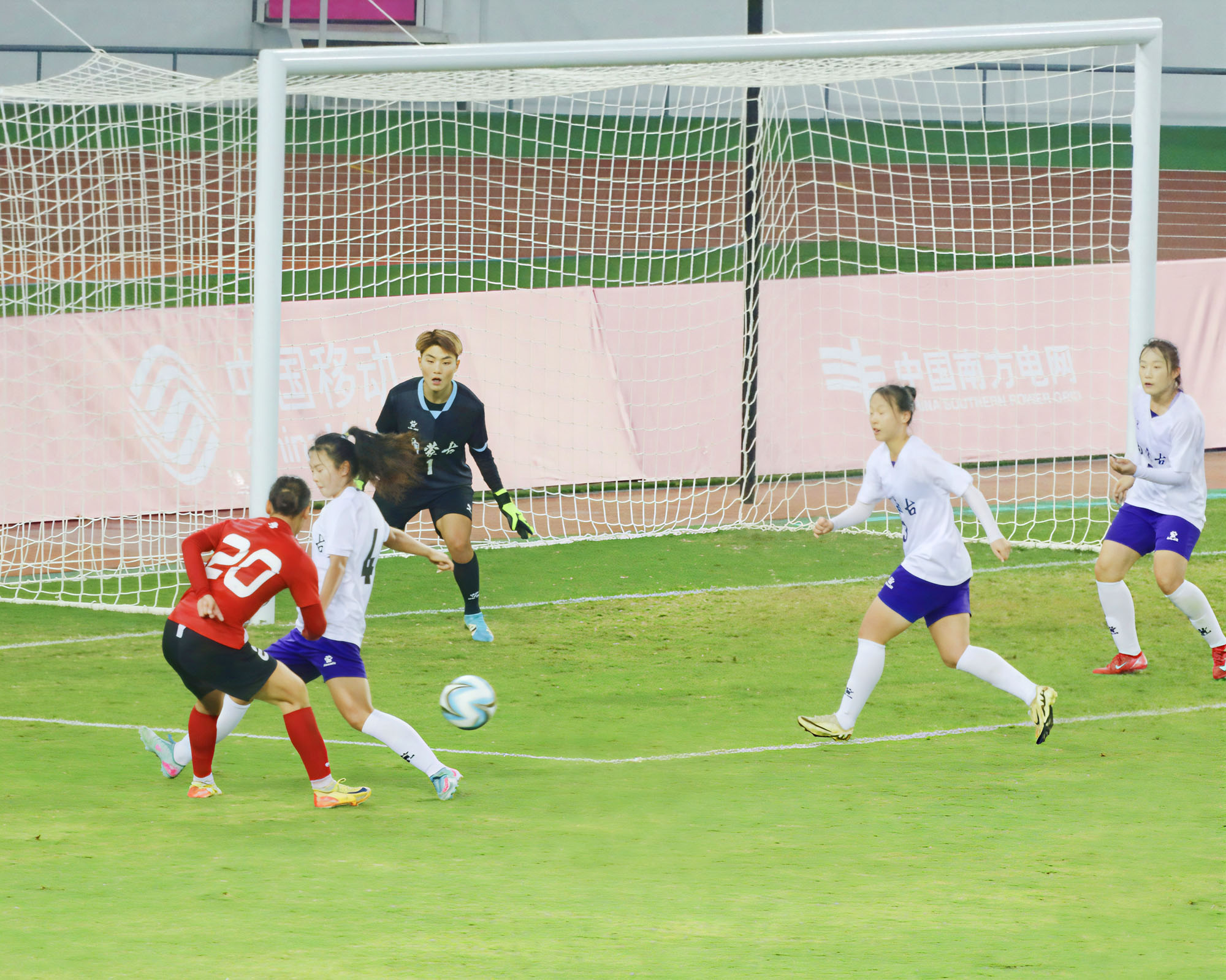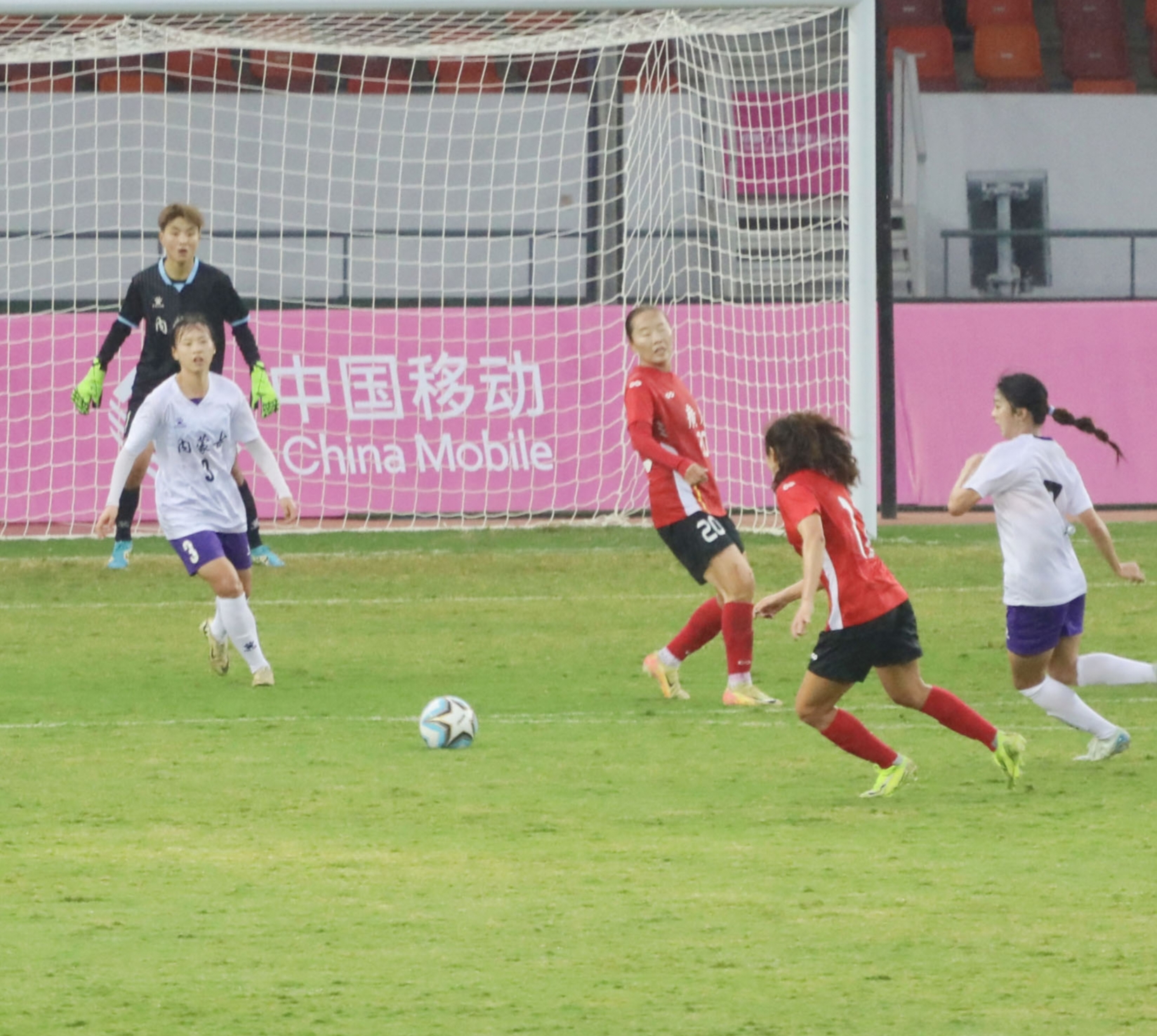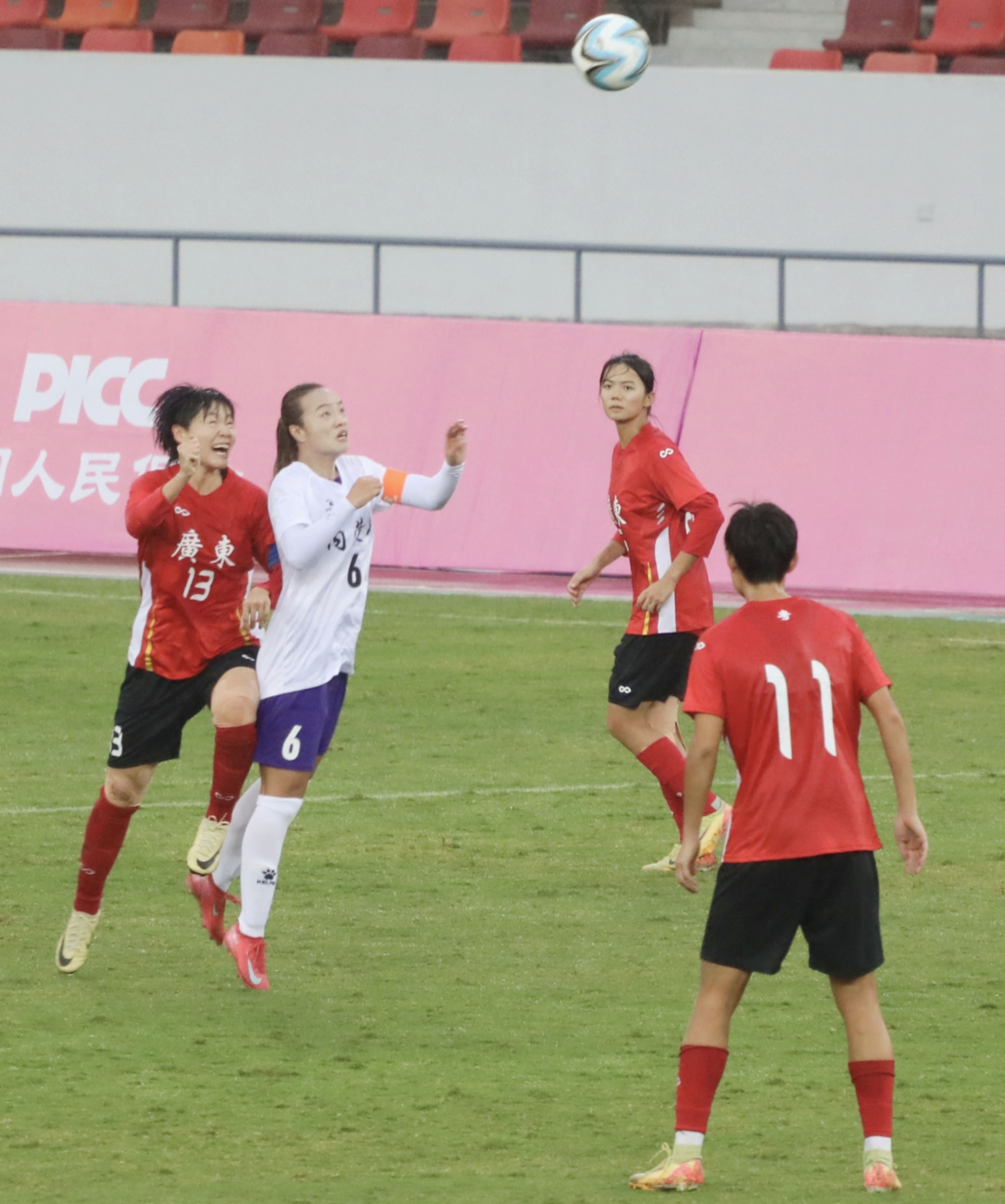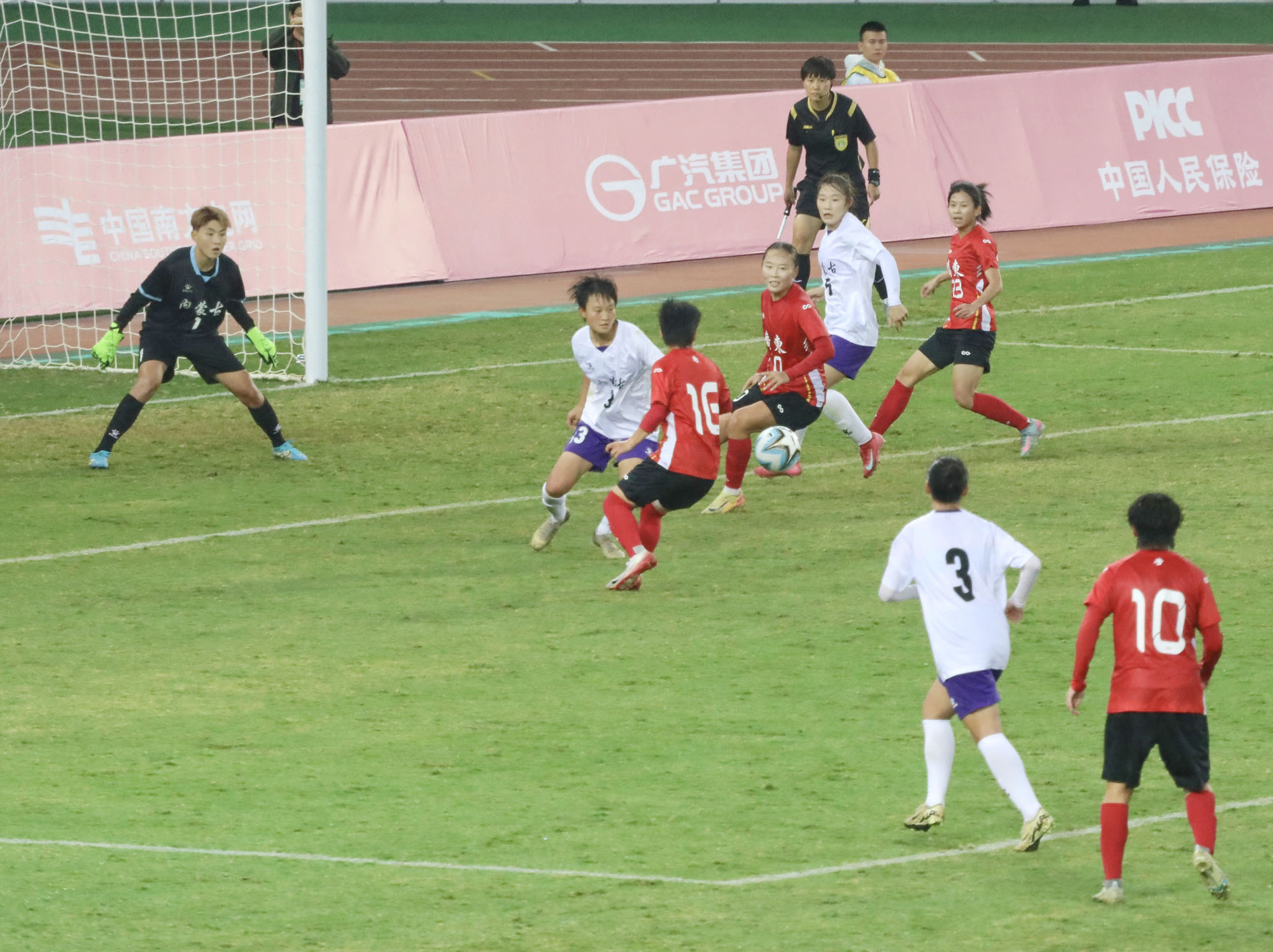 11月4日,十五运会女足成年组比赛在佛山世纪莲体育中心开踢,东道主广东队迎战内蒙古队。现场球迷助威声不断,广东队开场20分钟便由26号球员破门领先。下半场广东队攻势更盛,连入三球扩大比分,最终以5:0大胜对手,斩获小组赛开门红。