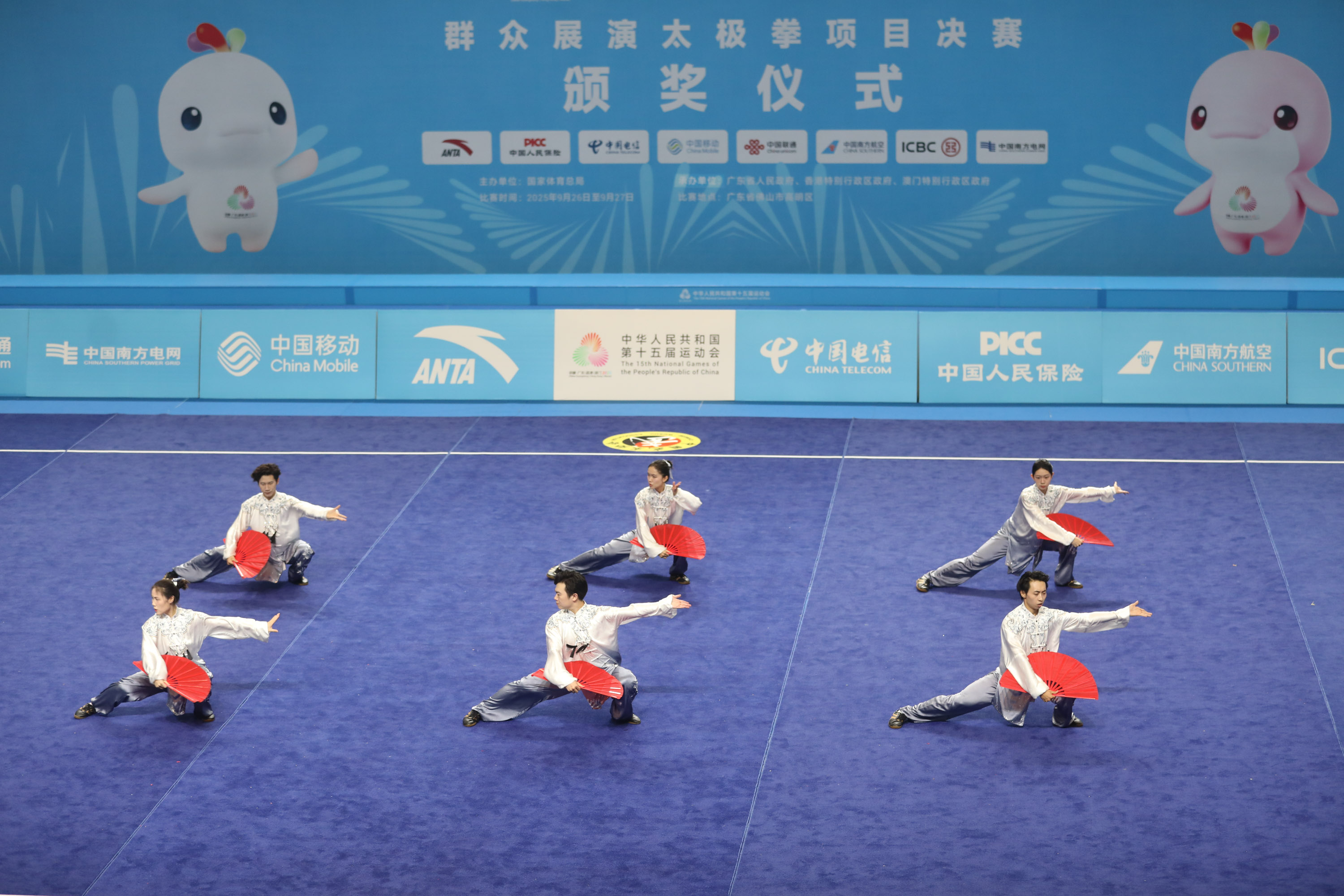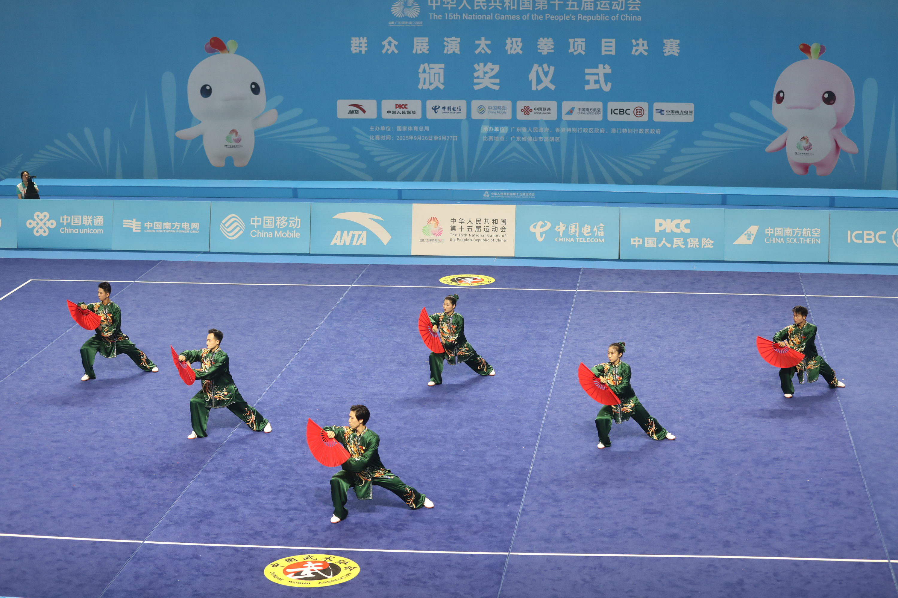 9月27日上午,随着第三单元的比赛全部结束,中国第十五届运动会群众展演太极拳项目决赛在广东佛山高明体育中心圆满落幕。为期两天的赛程中,来自全国16个省、自治区、直辖市、特别行政区的56支展演队伍、共计610名运动员同场竞技,充分展现了太极拳运动的深厚底蕴与十足魅力。