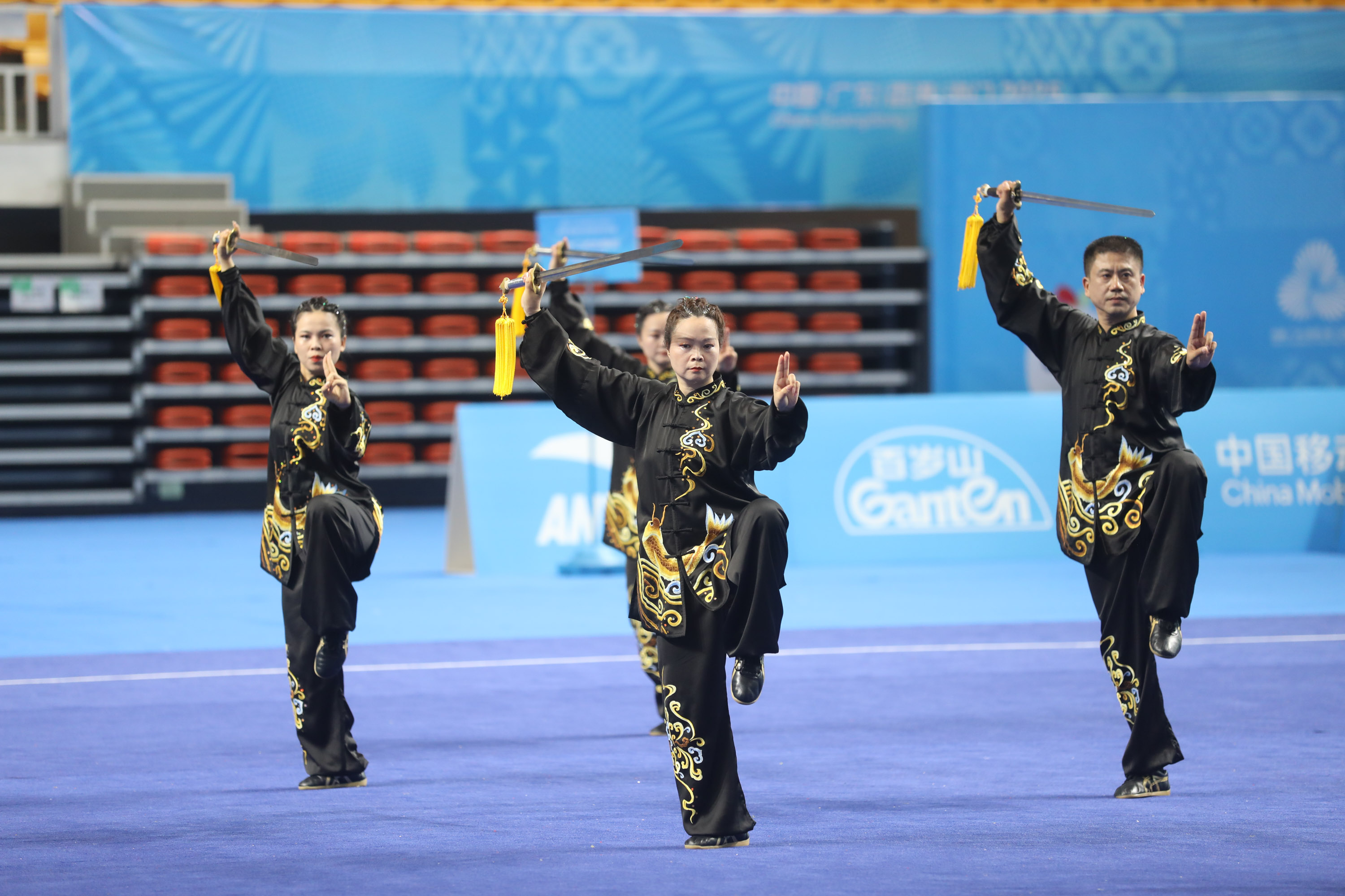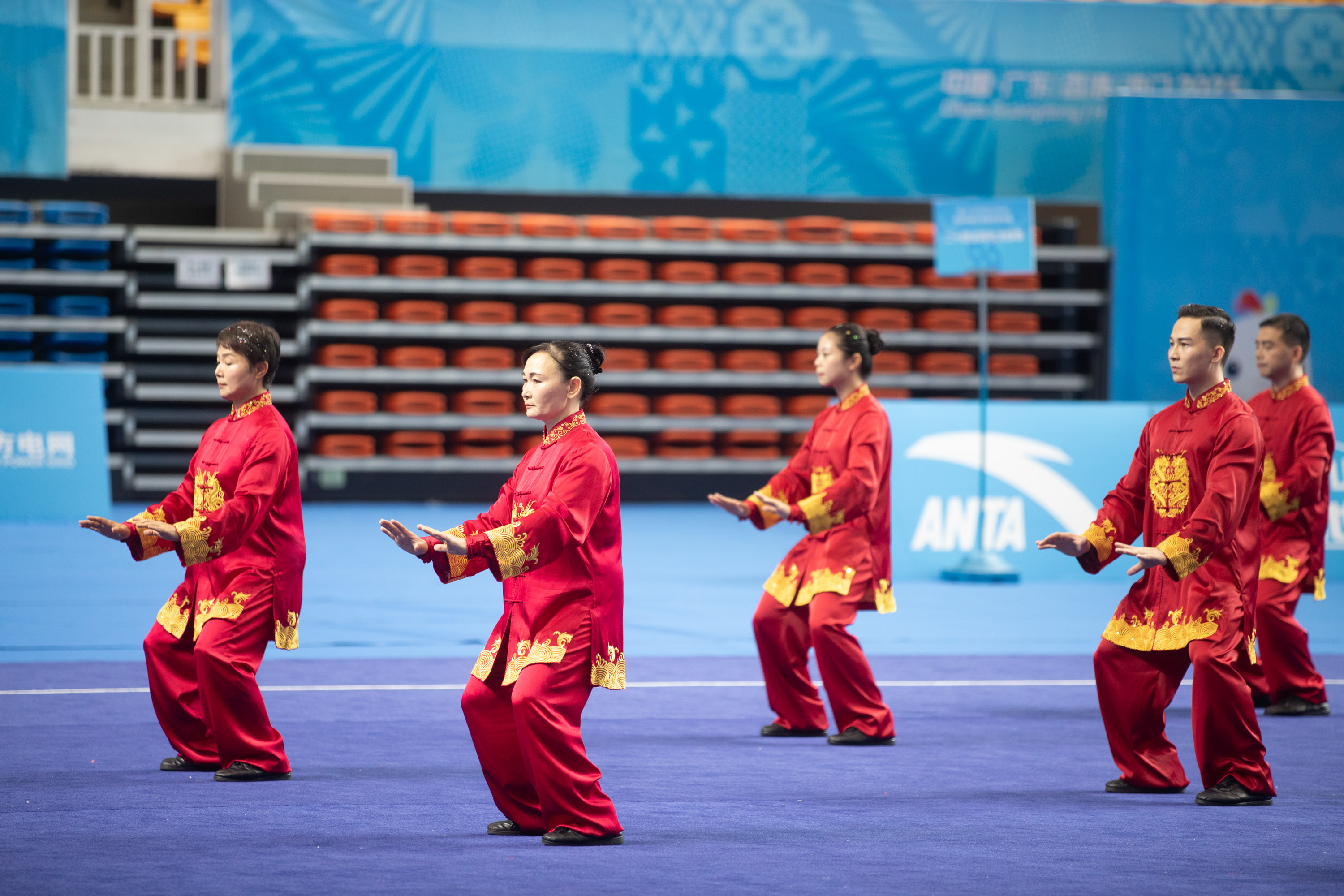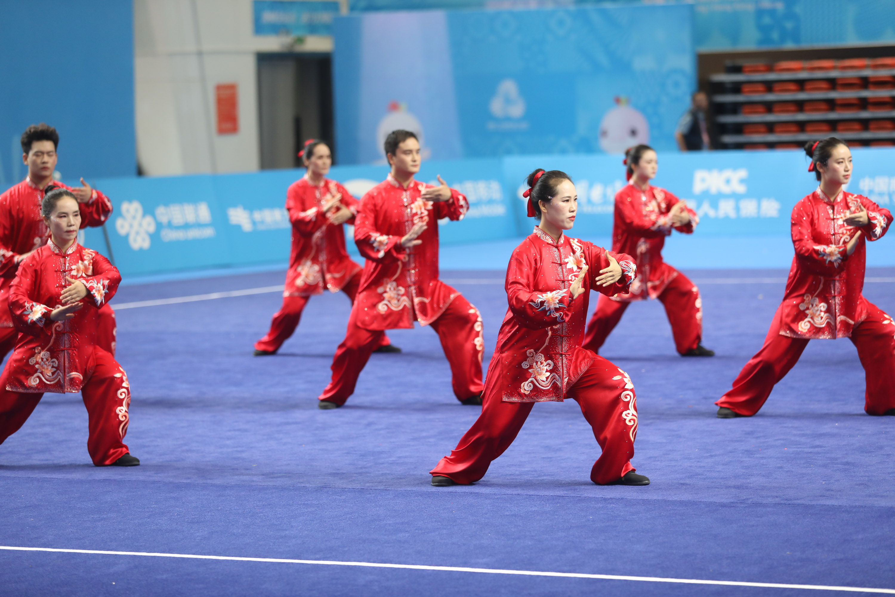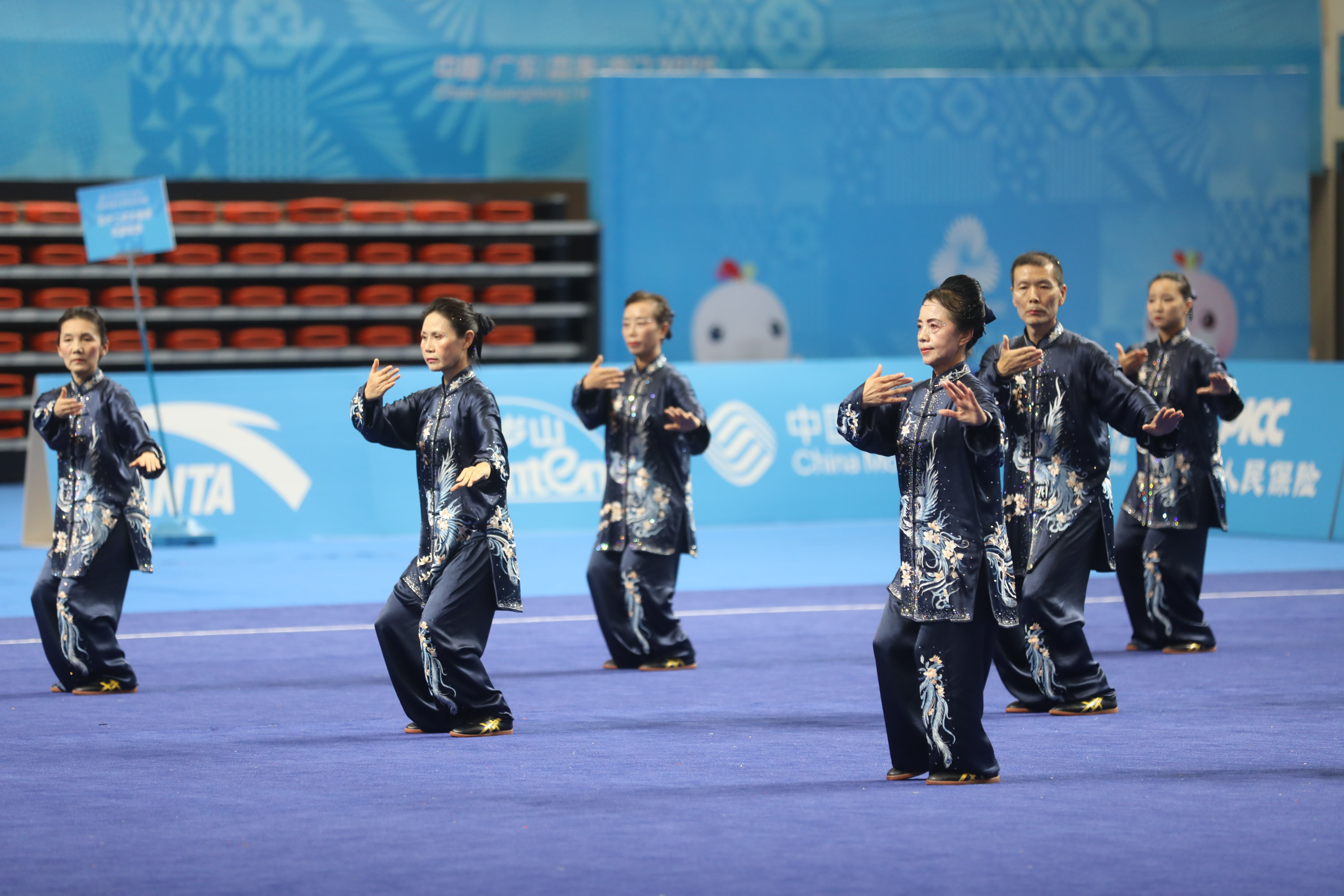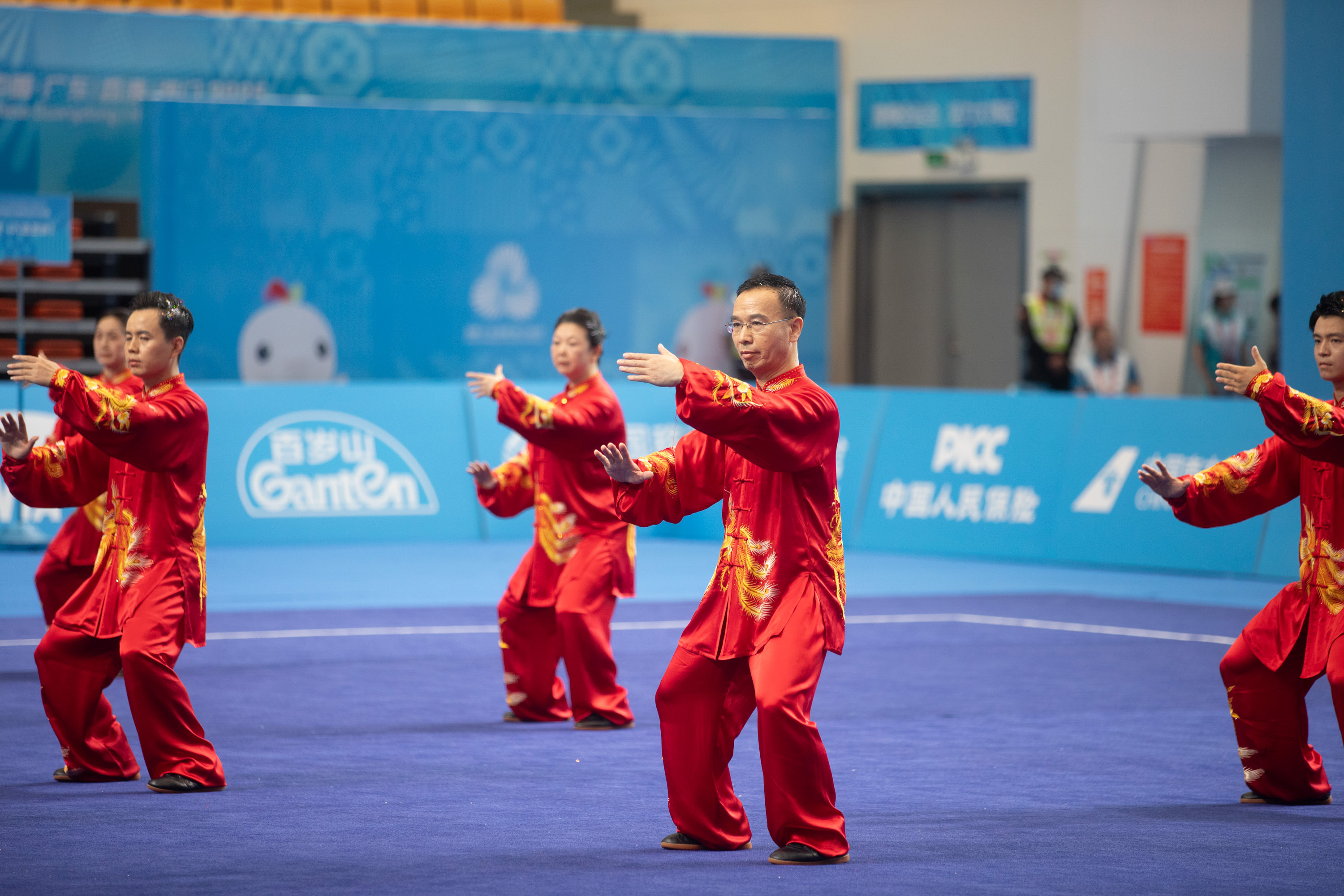 比赛设太极(八法五步)、二十四式简化太极拳、四十二式太极拳竞赛套路、太极扇、三十二式太极剑竞赛套路、四十二式太极剑竞赛套路共六个项目。在首日第一单元比赛中,广东队凭借稳定出色的发挥,夺得太极(八法五步)项目的一等奖;二十四式简化太极拳项目中陕西队表现更胜一筹,将一等奖收入囊中。第二单元比赛精彩继续,在四十二式太极拳竞赛套路的较量中,广东队再下一城,勇夺一等奖。太极扇项目的一等奖则被山东队成功摘得。