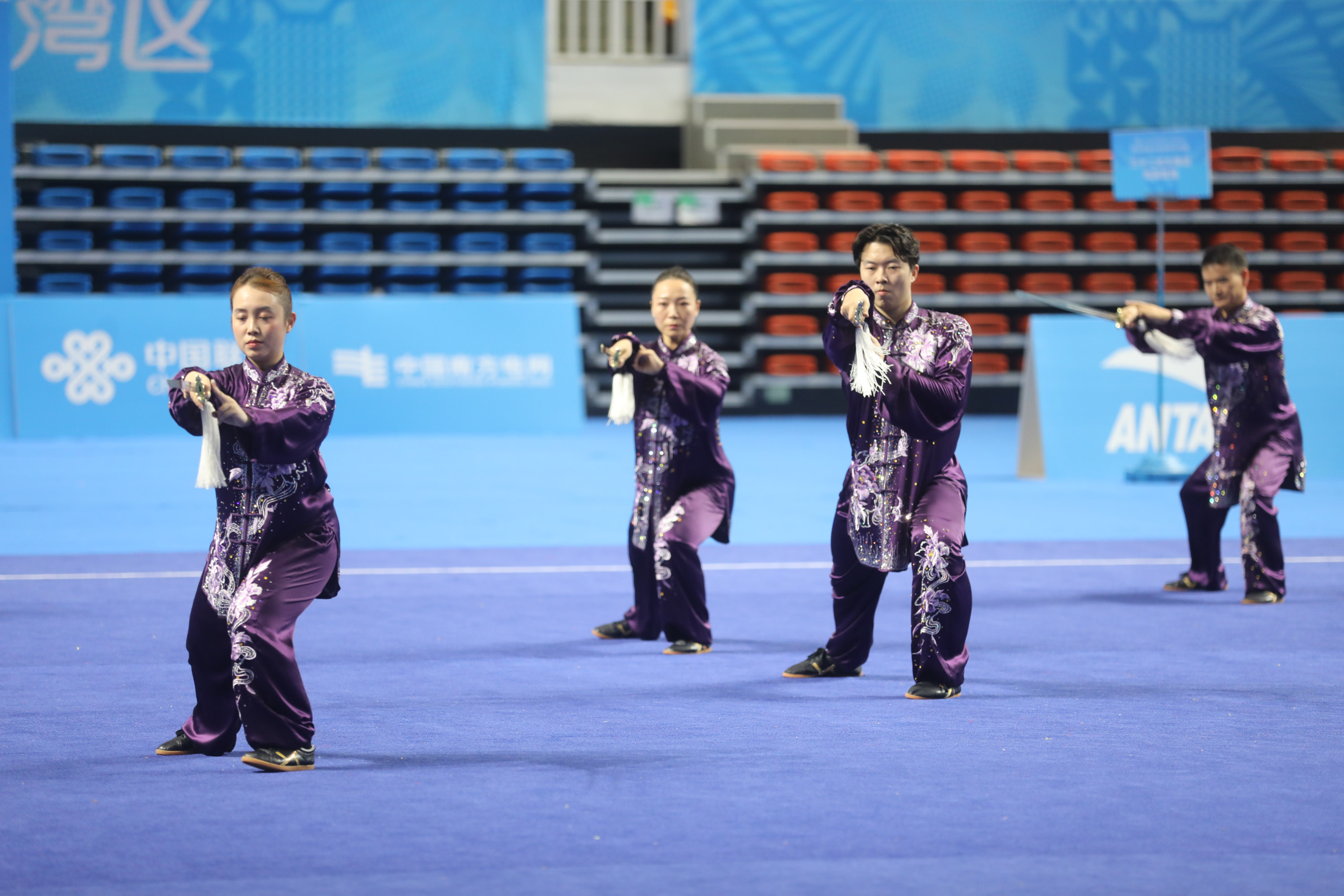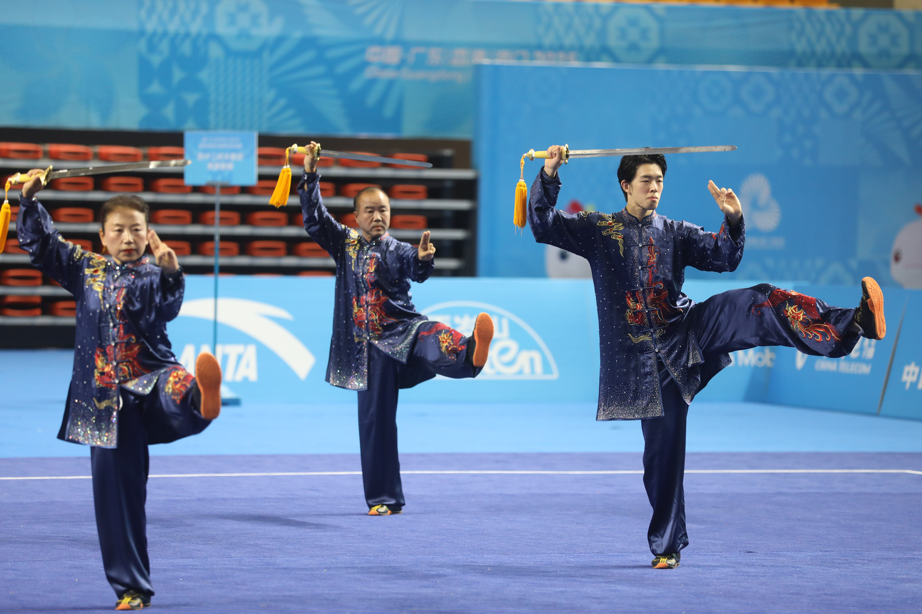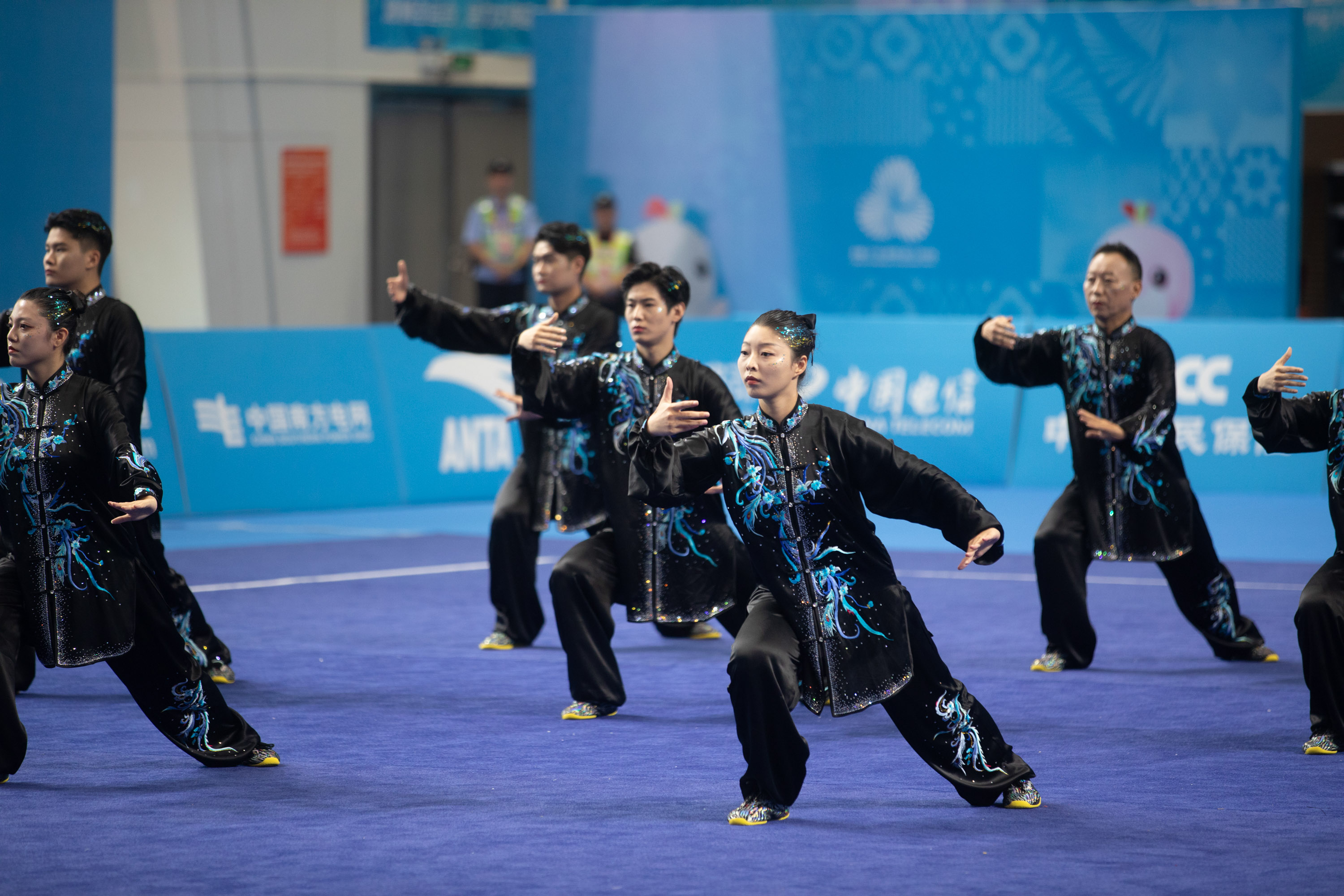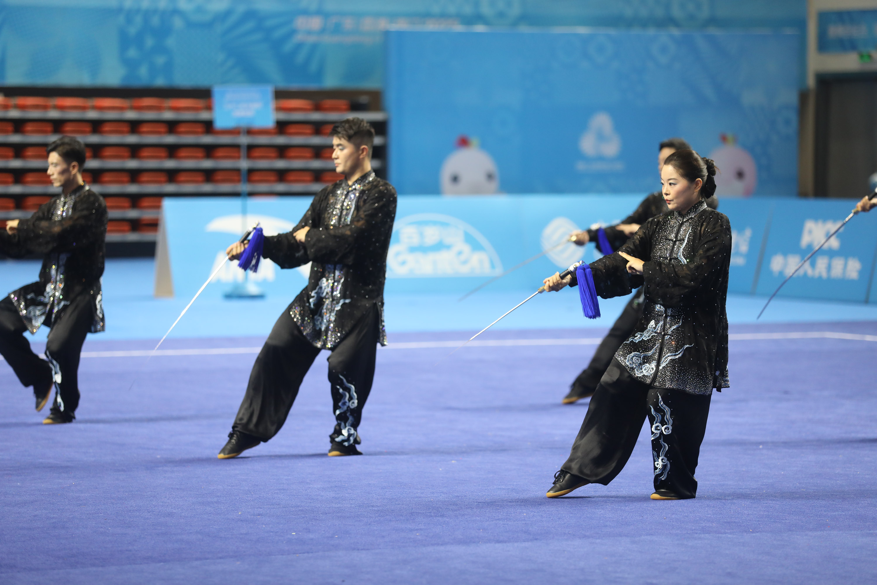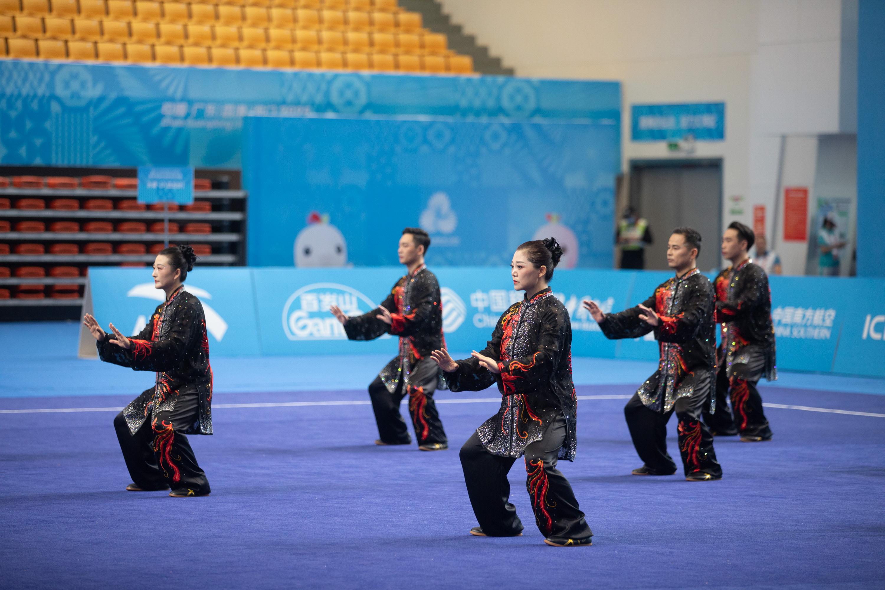 比赛设太极(八法五步)、二十四式简化太极拳、四十二式太极拳竞赛套路、太极扇、三十二式太极剑竞赛套路、四十二式太极剑竞赛套路共六个项目。在首日第一单元比赛中,广东队凭借稳定出色的发挥,夺得太极(八法五步)项目的一等奖;二十四式简化太极拳项目中陕西队表现更胜一筹,将一等奖收入囊中。第二单元比赛精彩继续,在四十二式太极拳竞赛套路的较量中,广东队再下一城,勇夺一等奖。太极扇项目的一等奖则被山东队成功摘得。