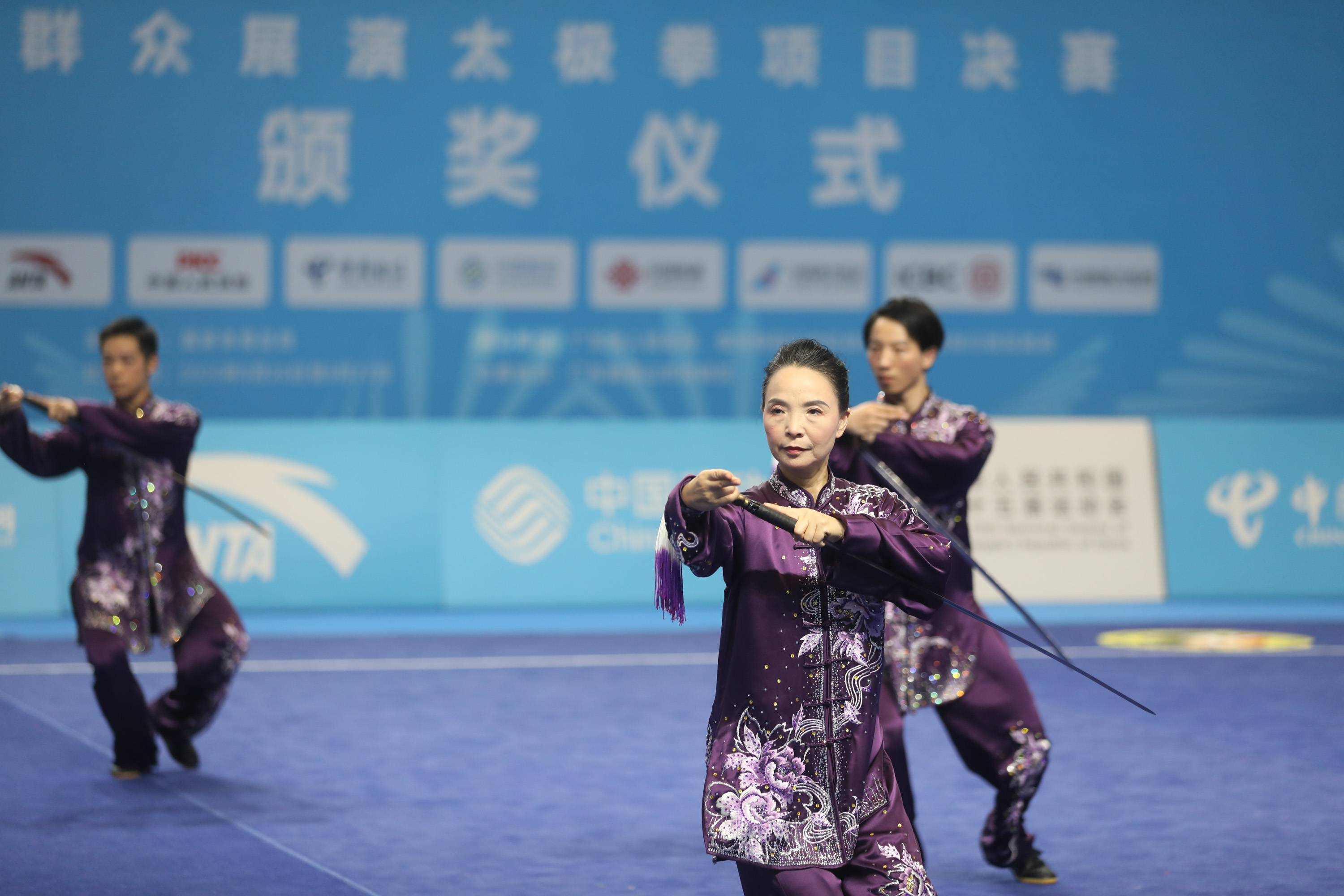 27日第三单元竞争依旧激烈。河南队在三十二式太极剑竞赛套路中以0.01分险胜,荣获一等奖。压轴进行的四十二式太极剑竞赛套路一等奖,最终由江苏队获得。