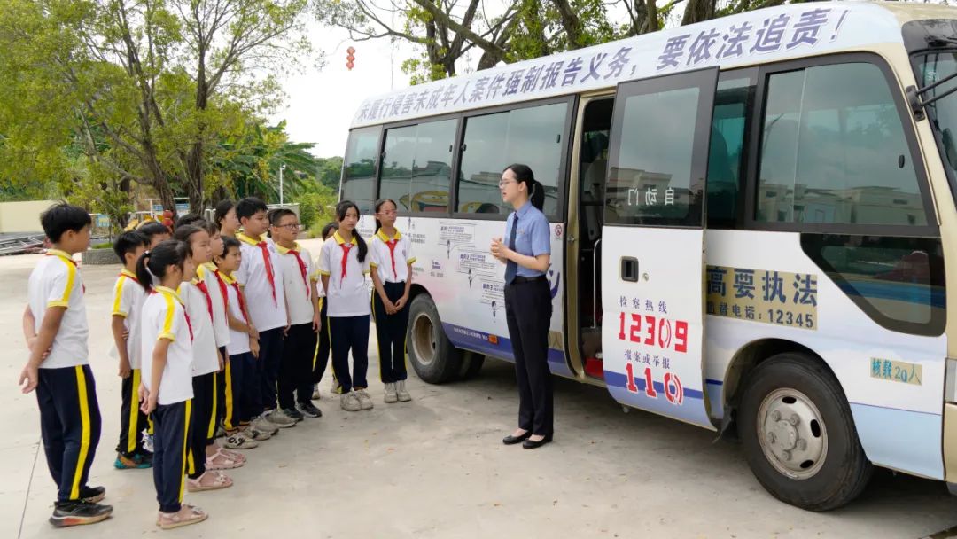 在白土镇蝉坑社区,检察干警为当地20多名学生讲述了交通安全、防溺水、防性侵等注意事项,并利用“普法大篷车”开启一场“在路上”的法治教育,结合真实案例解析法律知识,将碎片化时间变成生动课堂。同时,大篷车车身醒目印着“侵害未成年人案件强制报告制度”等内容,穿行在乡镇街巷间,既成为移动的普法宣传栏,也让“全民守护未成年人”的理念随车轮播撒,营造出浓厚的社会关注氛围。