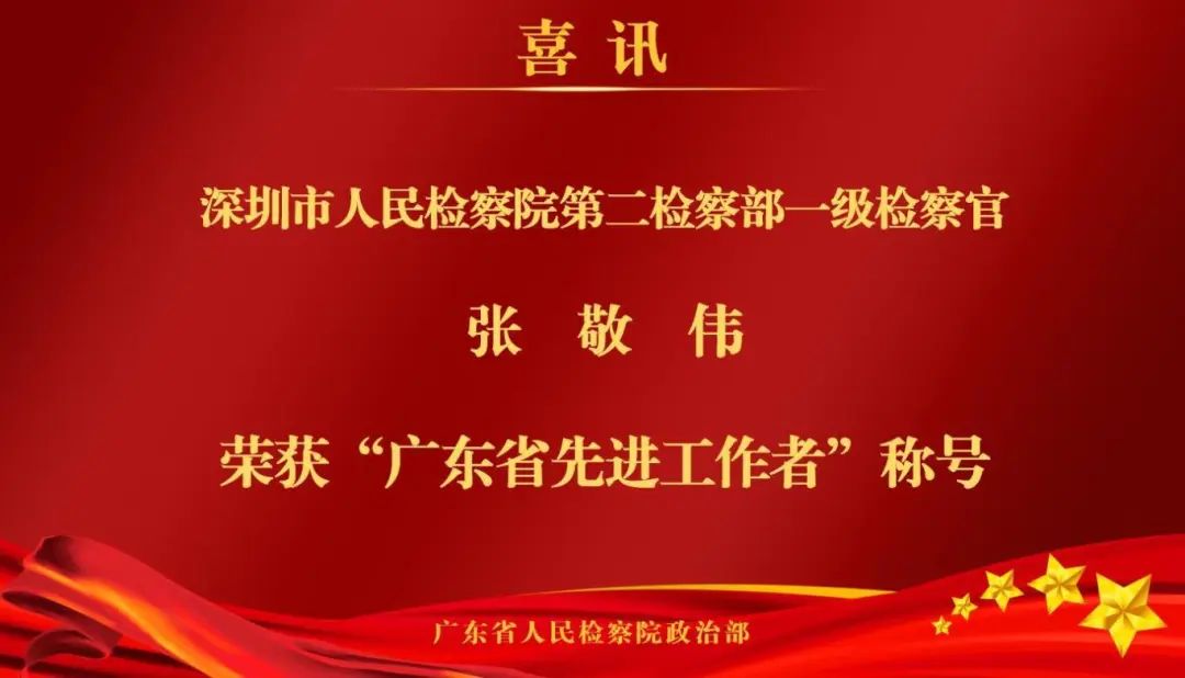 深圳市人民检察院第二检察部一级检察官。从检19年来,他始终牢记检察官职责,用自己的专业与良知维护法律的尊严,让人民群众在每一起案件中感受到公平正义。先后获评“全国优秀公诉人”“广东省检察机关公诉标兵”“广东省检察机关检察业务尖子”,被授予“广东省五一劳动奖章”,入选广东省检察机关职务犯罪检察人才库和全国检察机关普通犯罪人才库,荣立个人一等功1次,个人二等功1次,个人三等功2次。2025年4月被省委、省政府授予“广东省先进工作者”称号。