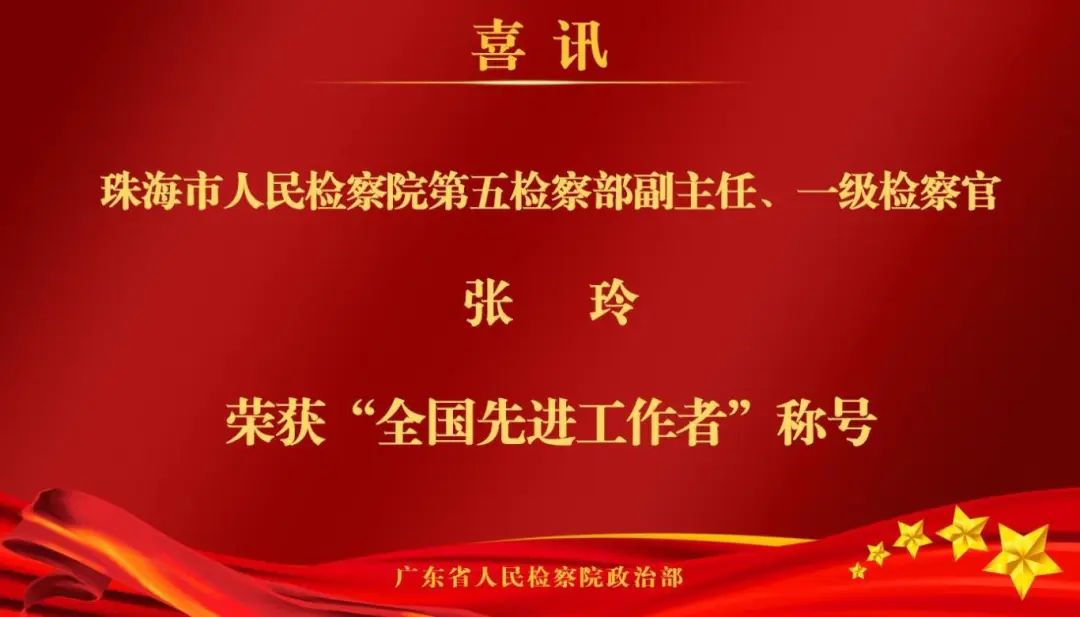 现任珠海市人民检察院第五检察部副主任、一级检察官。从检15年来,她坚守法治信仰,在检察履职中敢于担当,勇往直前,精准监督守护公平正义,用心用情传递司法温度,在本职岗位上作出了优异成绩。先后被评为“全国模范检察官”“全省行政检察优秀办案检察官”“珠海市新时代枫桥经验十佳基层实践者”,以第一名的成绩获评“2023年全国行政检察业务标兵”,入选全省行政检察业务专家库。2025年4月,被党中央、国务院授予“全国先进工作者”称号。