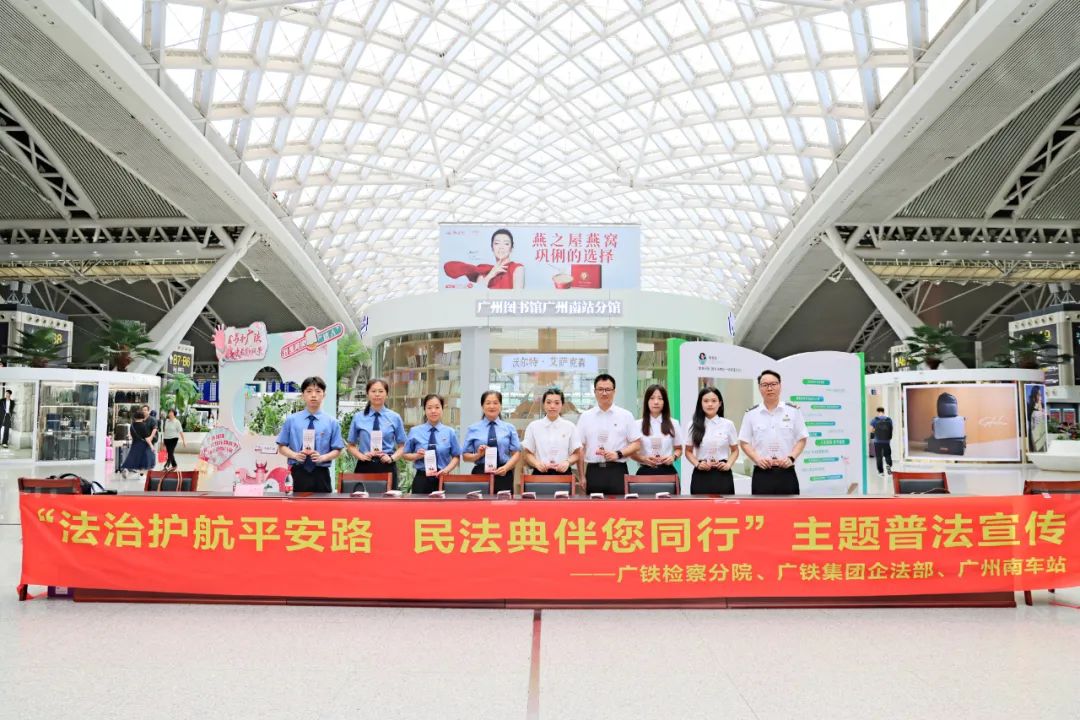 近日,广铁检察机关与广铁集团携手,在广州南站共同开展以“法治护航平安路 民法典伴您同行”为主题的普法宣传活动,将法治的阳光洒向过往旅客。
