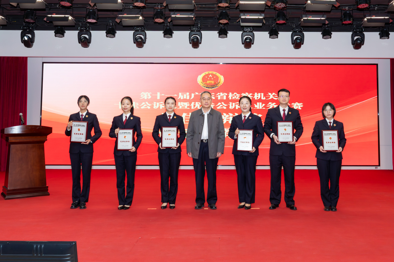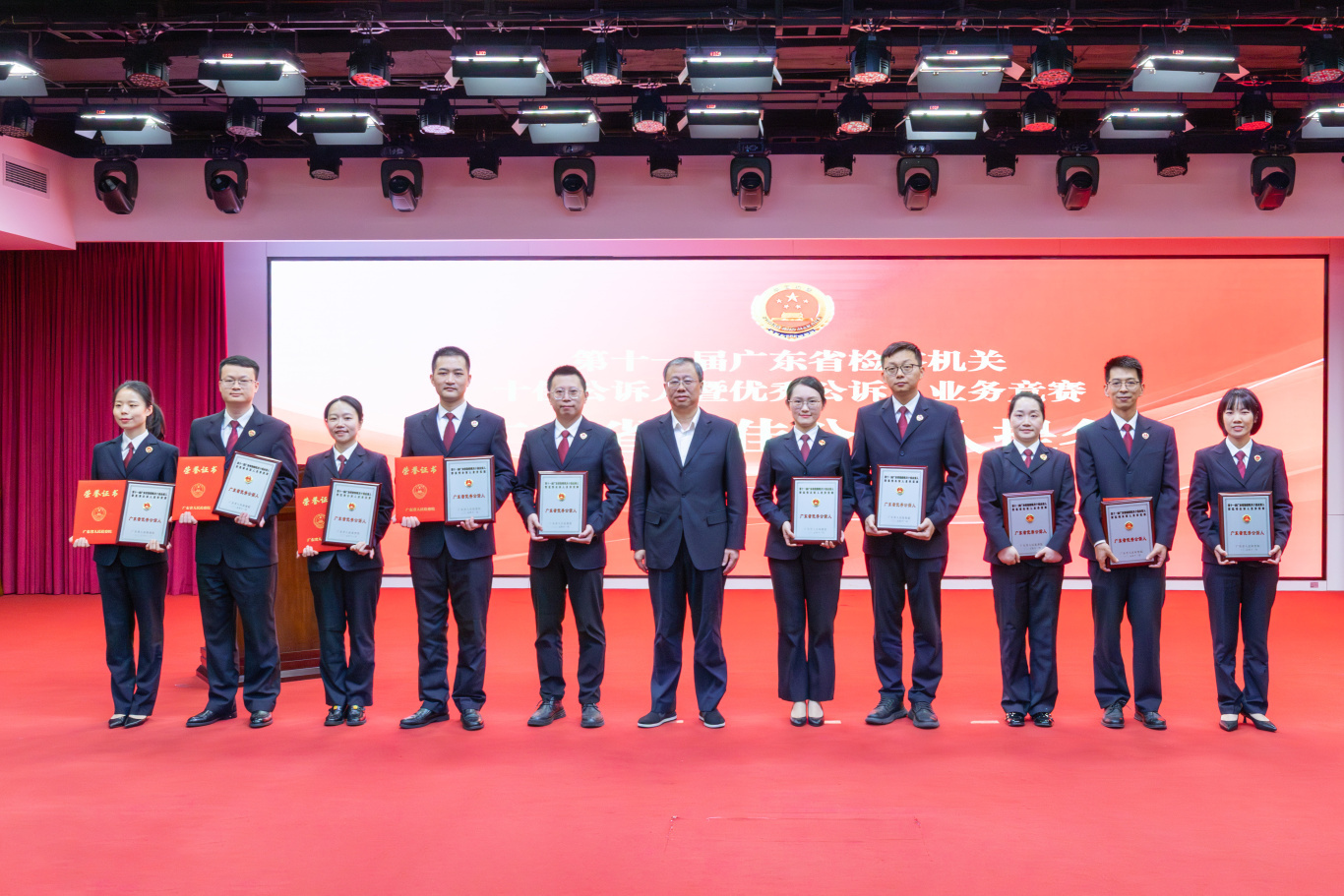 经过激烈角逐,竞赛最终评选出“广东省十佳公诉人”10名、“广东省十佳公诉人提名奖”10名、“广东省优秀公诉人”40名,以及“最佳论辩奖”1名、“优秀论辩奖”5名,并授予5个单位“优秀组织奖”。