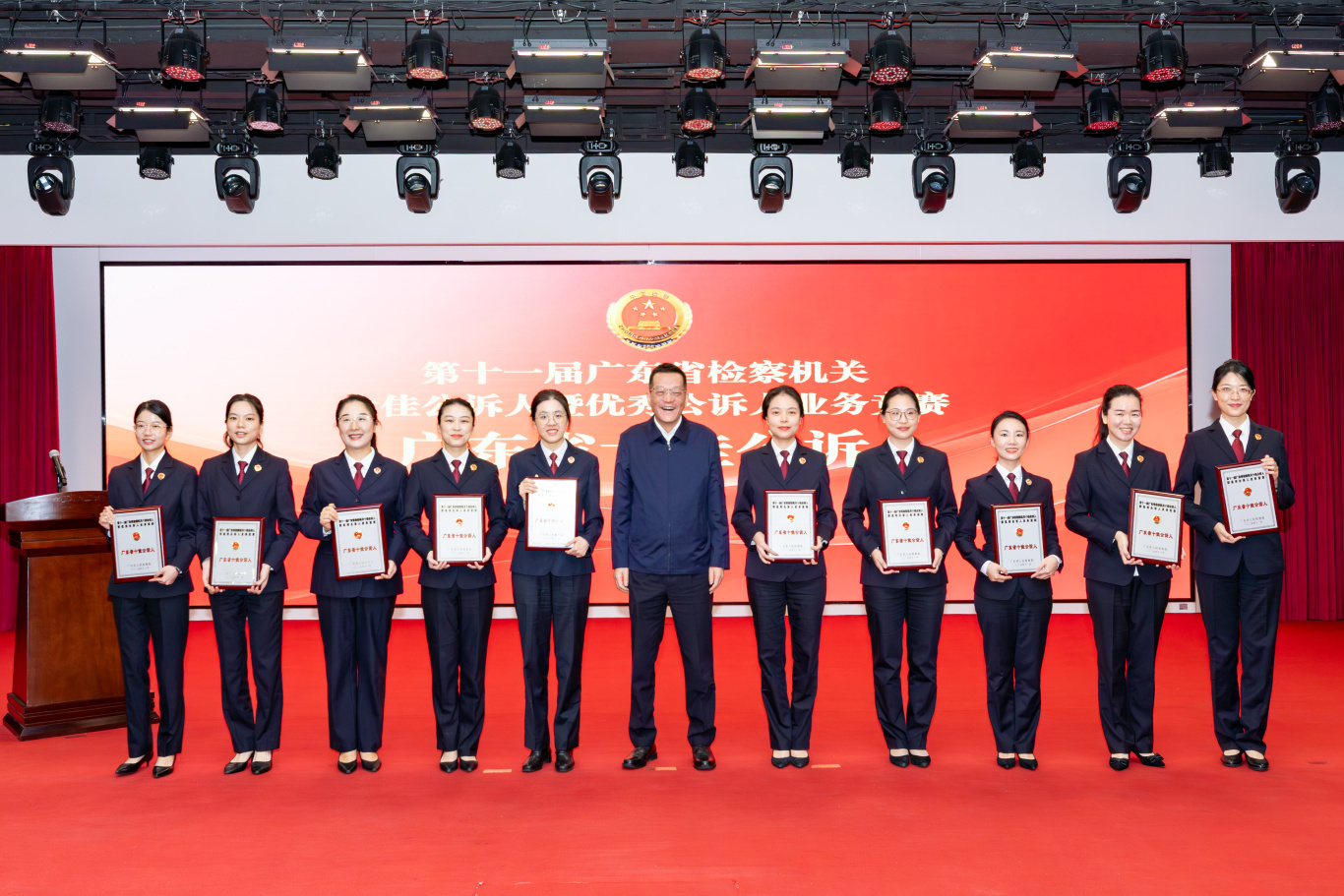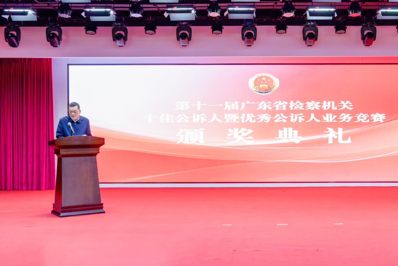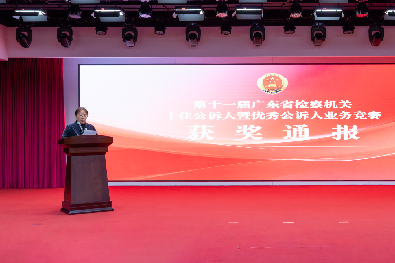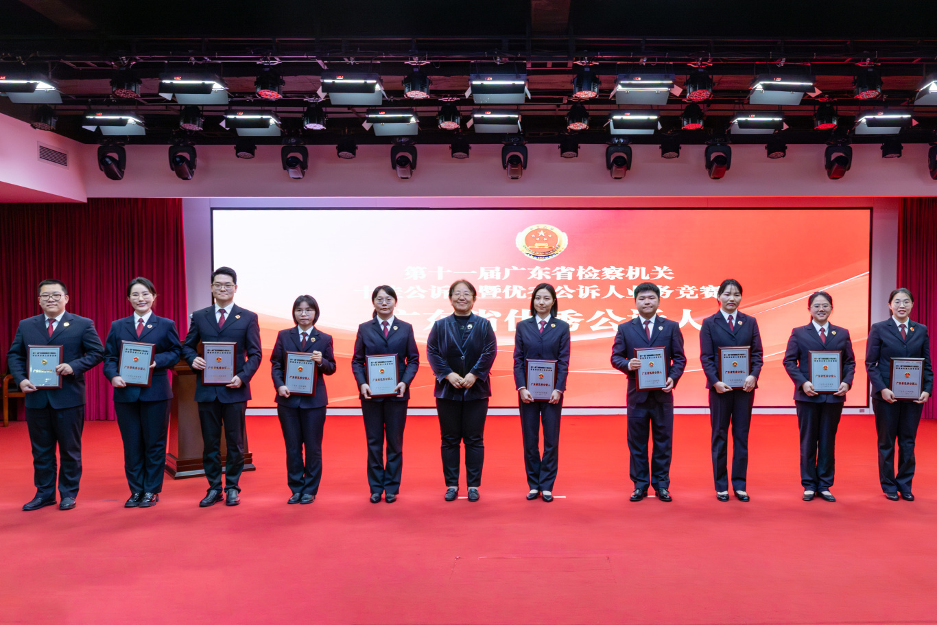 检徽熠熠,赛场争锋。2025年11月28日,第十一届广东省检察机关十佳公诉人暨优秀公诉人业务竞赛在广州圆满落幕。省检察院党组书记、检察长冯键亲临现场指导,省检察院党组成员、驻院纪检监察组组长熊作福,省检察院党组成员、政治部主任闫进宏,省检察院党组成员、副检察长李学磊,省检察院党组成员、副检察长高波全程参与。