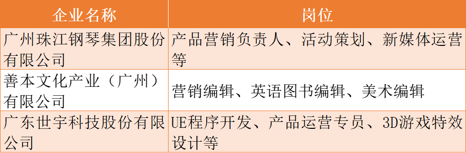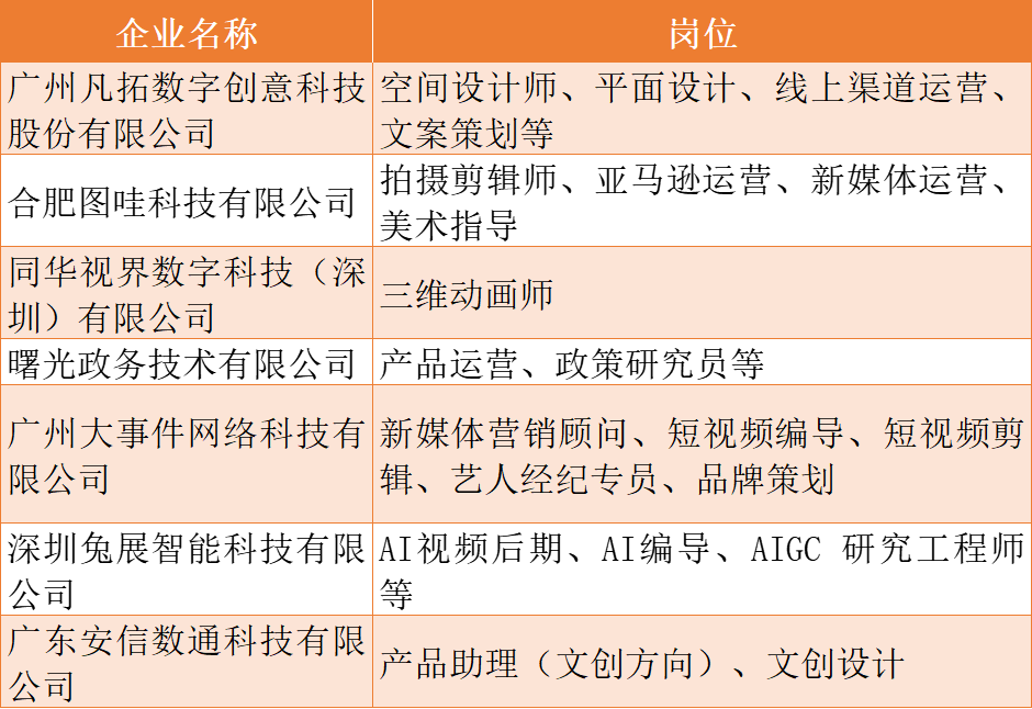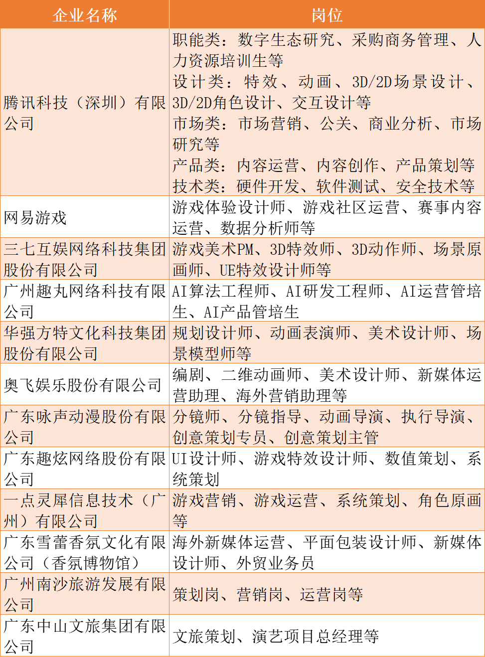 线上线下汇聚百余家广东重点文化产业企业,覆盖影视、演艺市场、动漫影视、网络游戏、电子竞技、网络视听6大核心领域,无论是应届生、留学生,还是想转行的从业者,都能找到适配的岗位!
