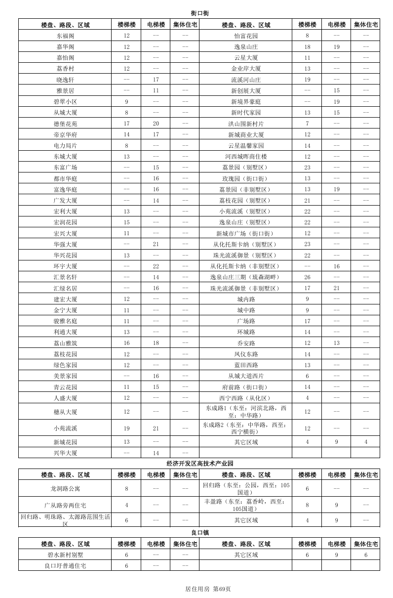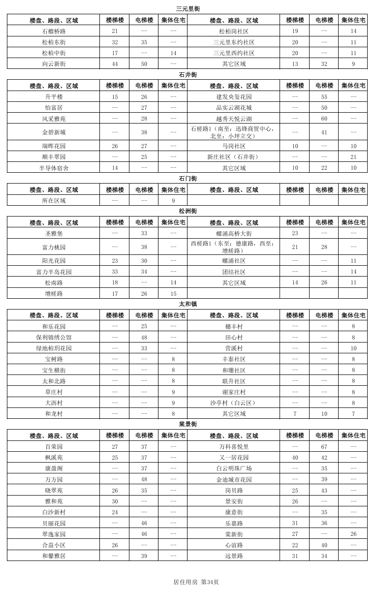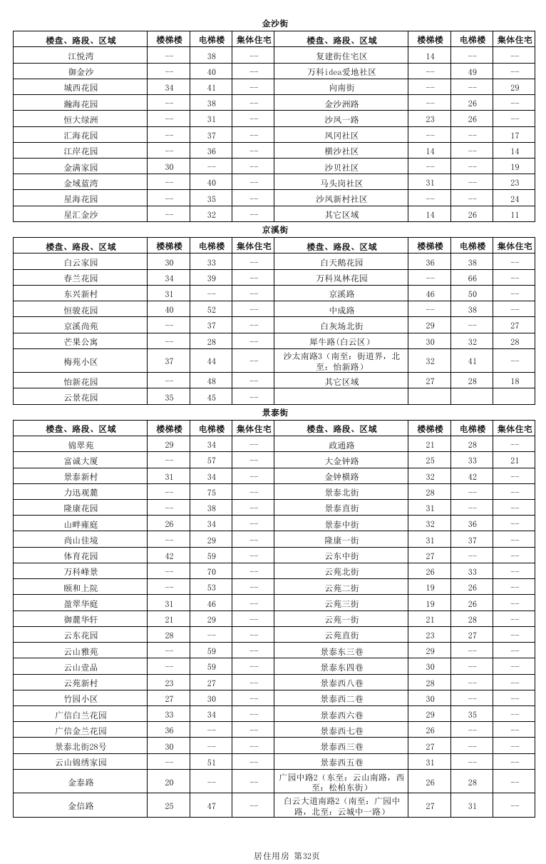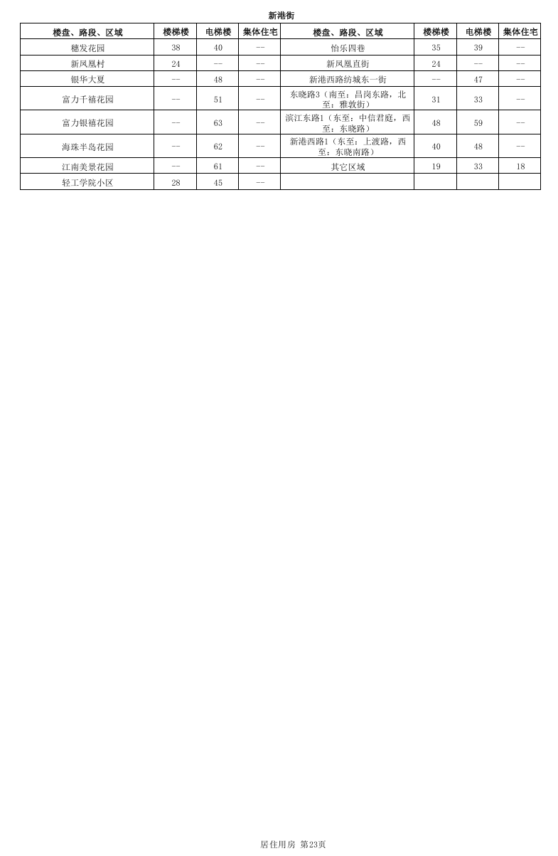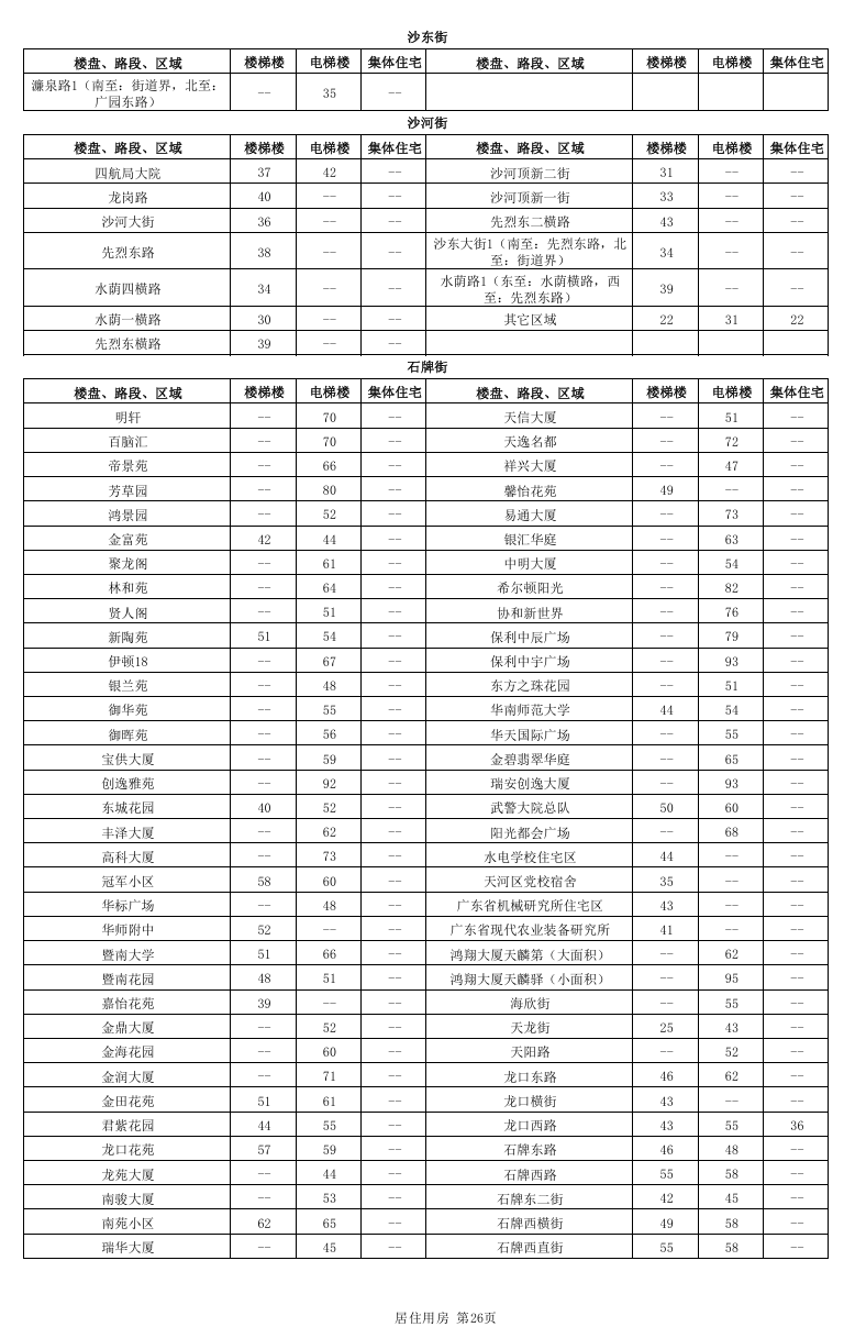 居住用房分为国有土地上居住用房和集体土地上居住用房,其中国有土地上居住用房又进一步细分为楼梯楼和电梯楼,而集体土地上居住用房不区分有无电梯。本租金参考价中公布的居住用房租金参考价对应的是成新度中等、楼层中等、普通装修、空房(硬装到位,不含家私家电)条件下的租金参考价。因此,在实际应用中应当根据物业的楼层、装修标准、内部配套等因素差异,分别在公布租金参考价的基础上予以上浮或下调。