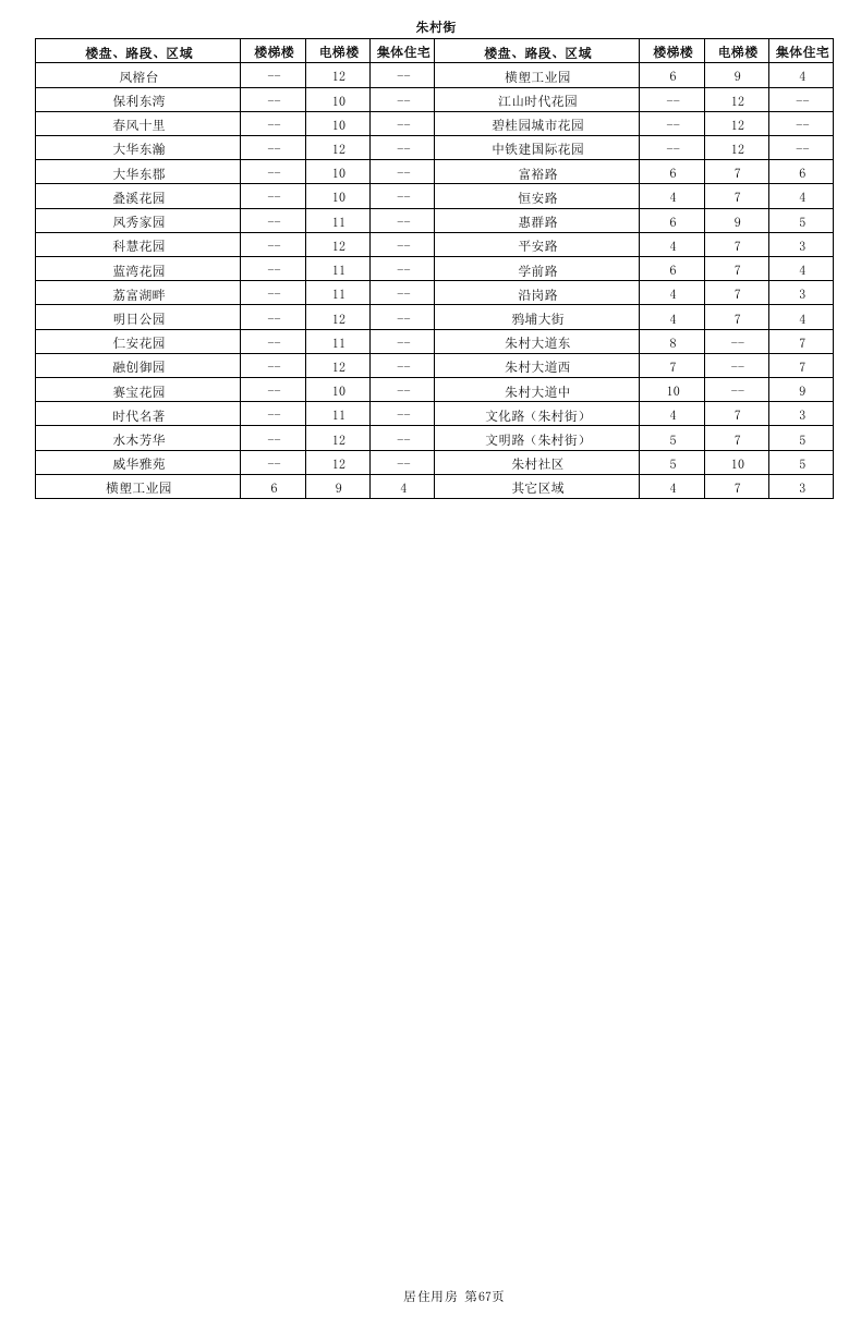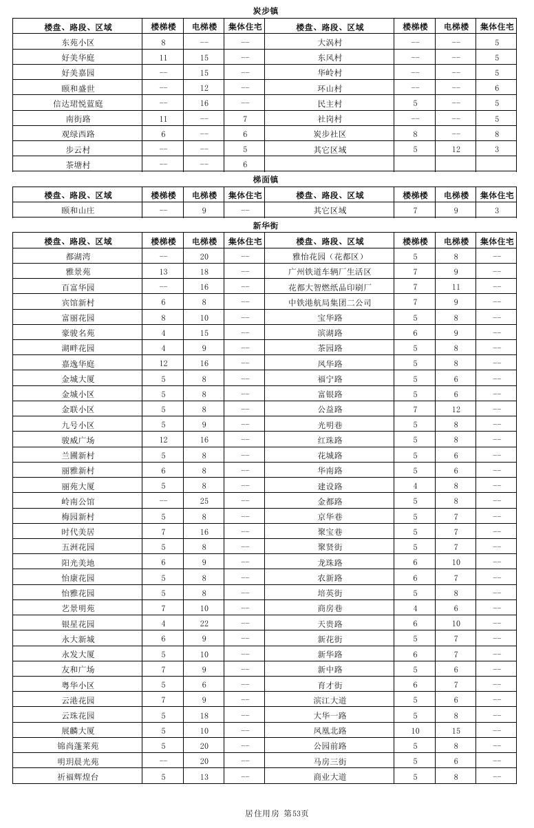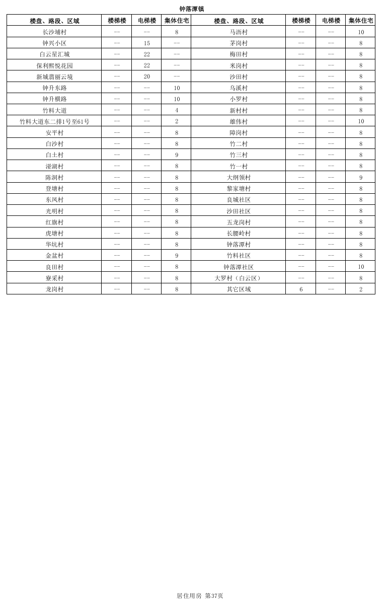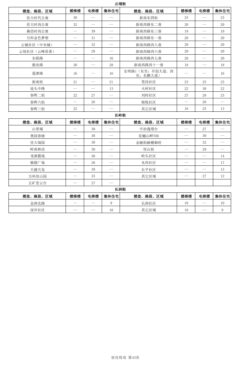 居住用房分为国有土地上居住用房和集体土地上居住用房,其中国有土地上居住用房又进一步细分为楼梯楼和电梯楼,而集体土地上居住用房不区分有无电梯。本租金参考价中公布的居住用房租金参考价对应的是成新度中等、楼层中等、普通装修、空房(硬装到位,不含家私家电)条件下的租金参考价。因此,在实际应用中应当根据物业的楼层、装修标准、内部配套等因素差异,分别在公布租金参考价的基础上予以上浮或下调。
