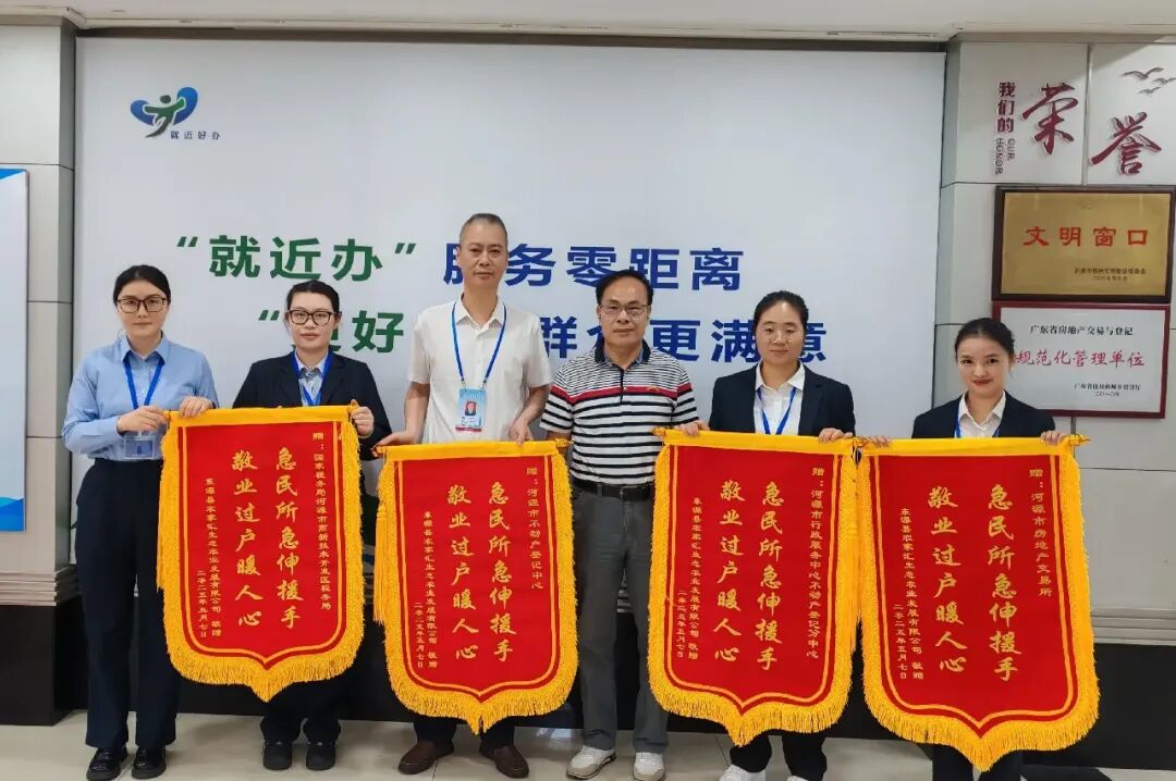 ▲企业为河源市不动产登记中心工作人员送上答谢锦旗