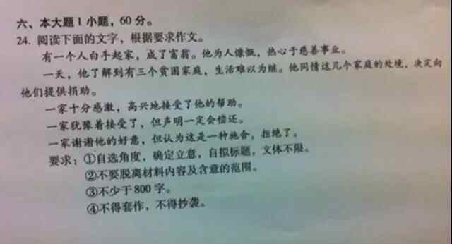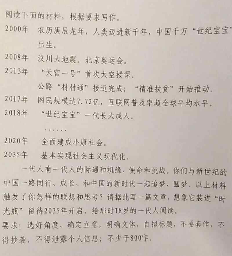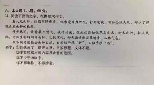 要求:选准角度,确定立意,明确文体,自拟标题;不要套作,不得抄袭;不得泄露个人信息;不少于800字。