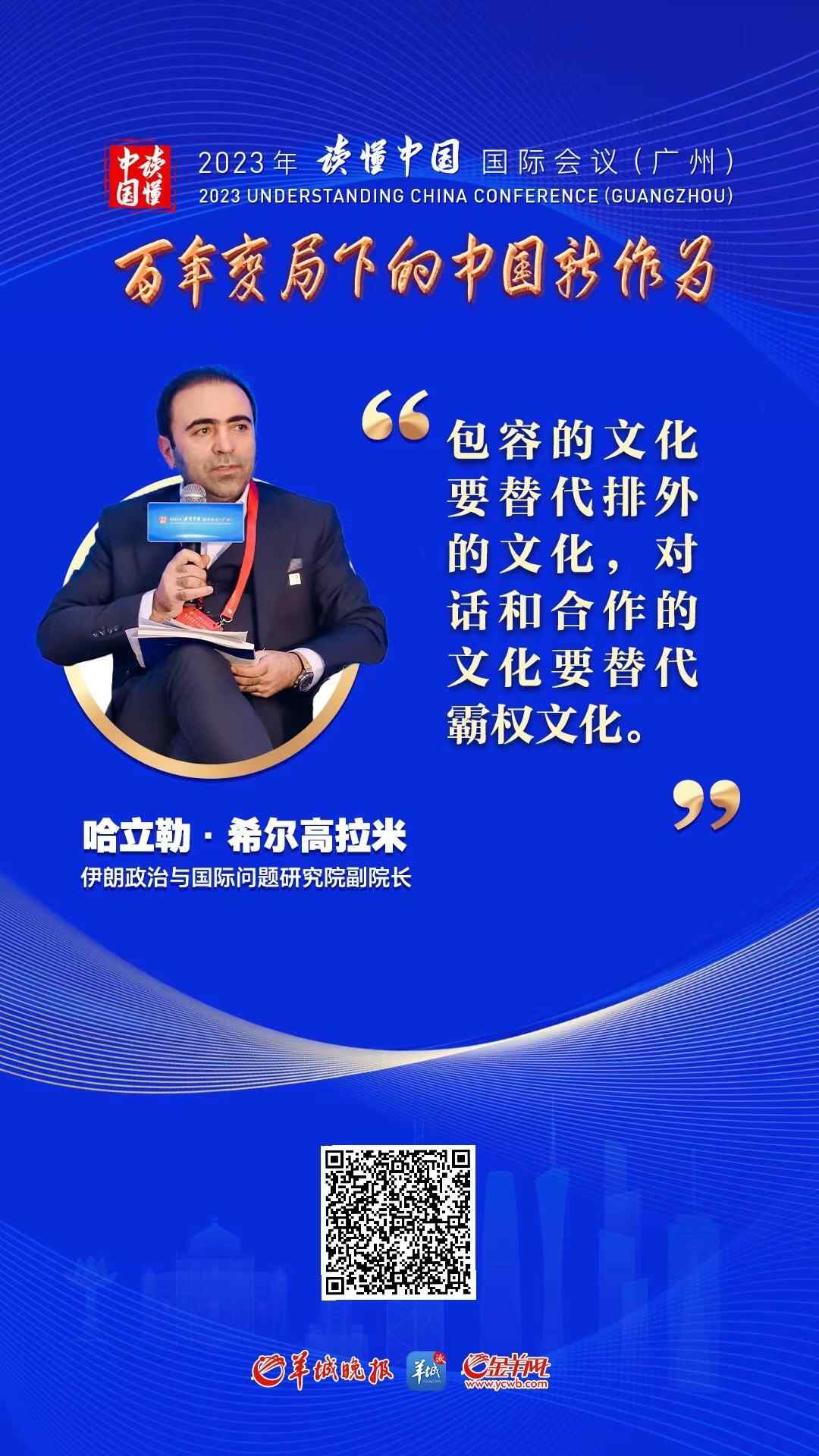 12月2日下午,2023年“读懂中国”国际会议(广州)“专题会议三:全球文明倡议与文明交流互鉴”上,伊朗政治与国际问题研究院副院长哈立勒·希尔高拉米表示,包容的文化要替代排外的文化,对话和合作的文化要替代霸权文化。像全球文明倡议这样的重要倡议,能够帮助并促进不同国家地区更好地了解彼此的价值观和传统,为创造一个更美好的世界作出积极贡献。