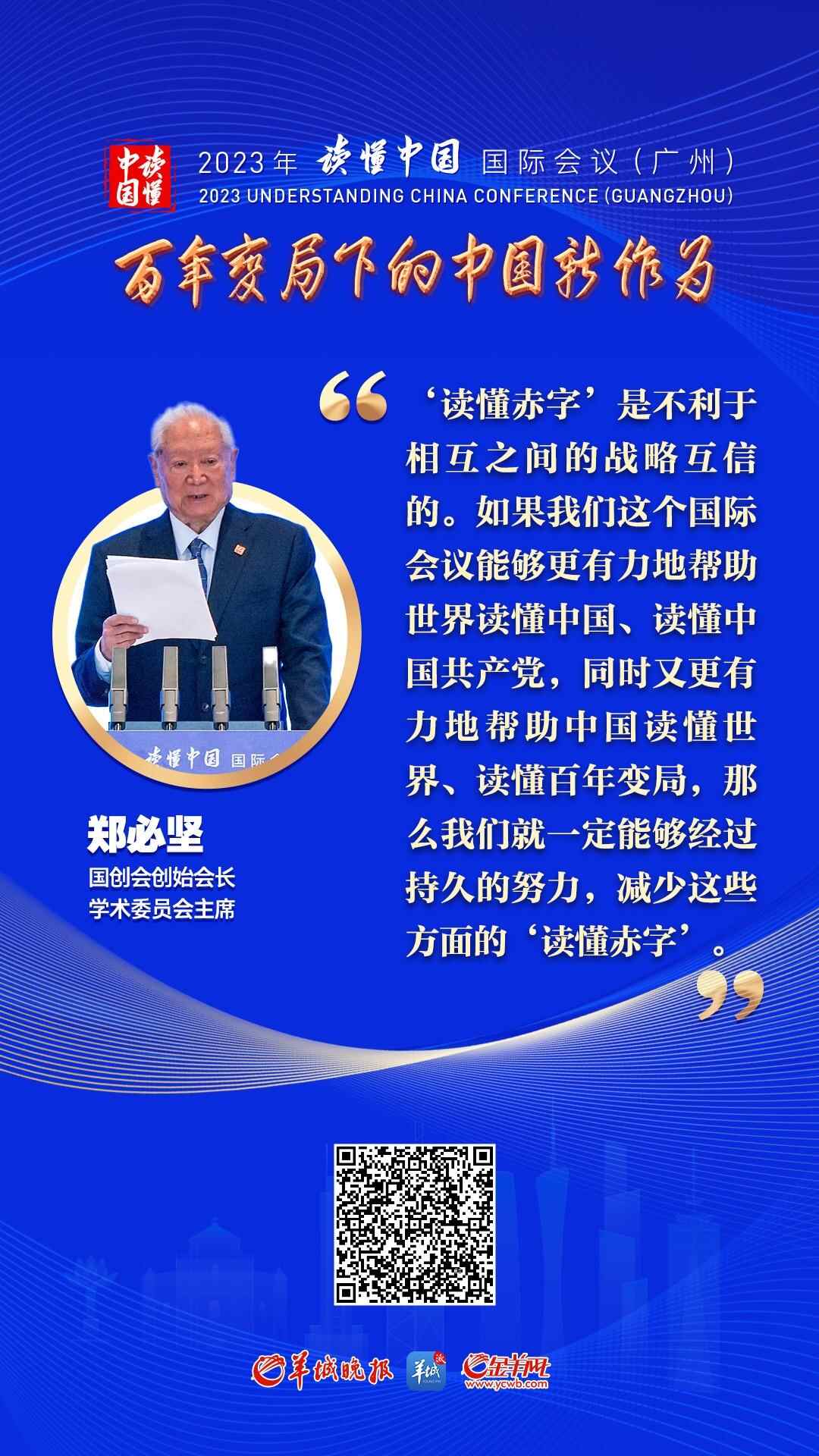 12月2日上午,2023年“读懂中国”国际会议(广州)在越秀国际会议中心开幕。在开幕式上的大会演讲环节,中国国家创新与发展战略研究会创始会长、学术委员会主席郑必坚表示,百年变局下的中国新作为是全球关注的重大问题。