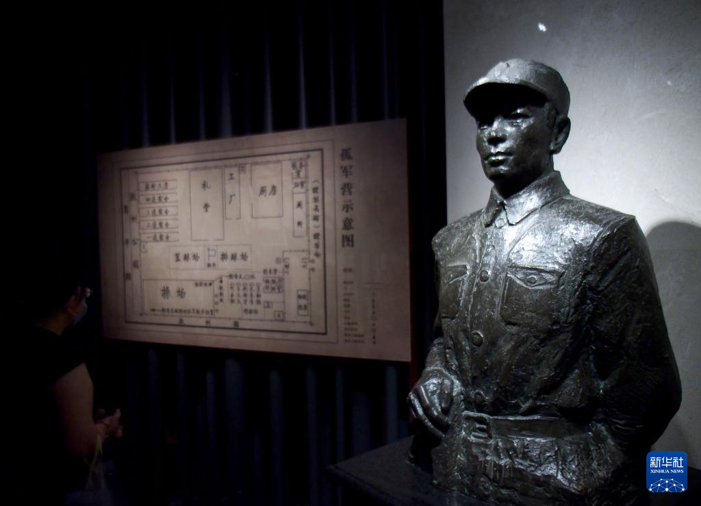 这是在上海四行仓库抗战纪念馆拍摄的谢晋元铜像(2020年8月25日摄)。新华社记者 任珑 摄