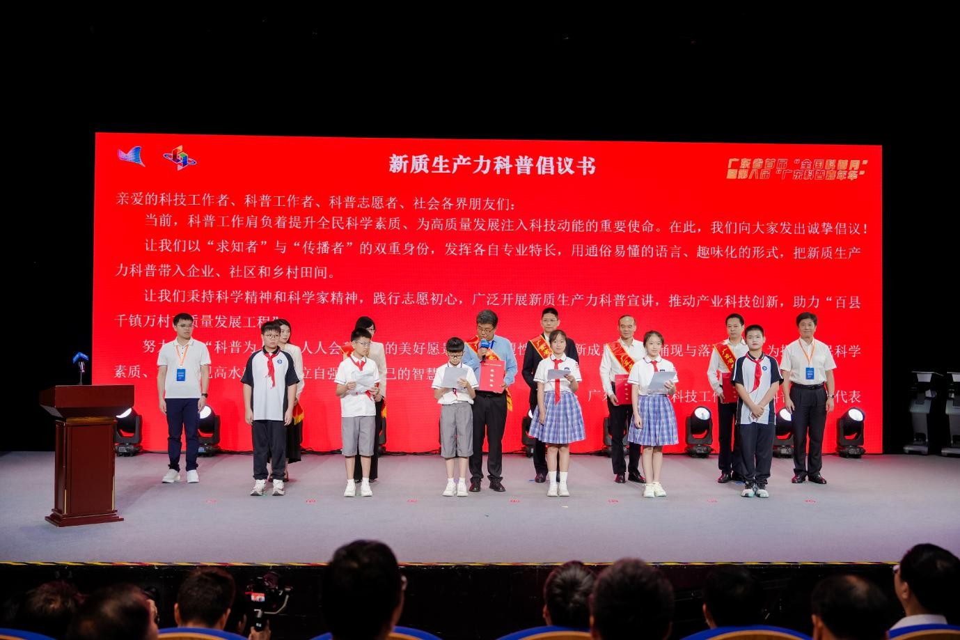 广东省“最美科技工作者”代表还与来自科研院所、高等院校、中小学校、科普组织的志愿者代表共同向全社会发起“新质生产力科普倡议”。