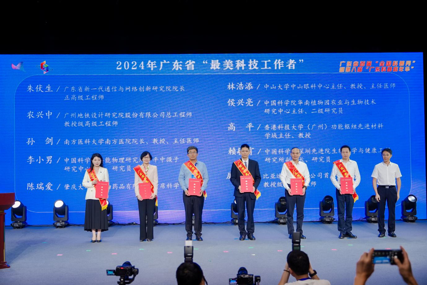 启动仪式上,为弘扬科学家精神、树立科技榜样,成洪波向广东省新一代通信与网络创新研究院院长朱伏生、广州地铁设计研究院总工程师农兴中、南方医科大学南方医院院长孙剑、中国科学院高能物理研究所开平中微子研究中心主任李小男、香港科技大学(广州)功能枢纽先进材料学域主任高平、中国科学院深圳先进院生物医学与健康工程研究所副所长赖毓霄等10位2024年广东省“最美科技工作者”代表颁发荣誉证书。