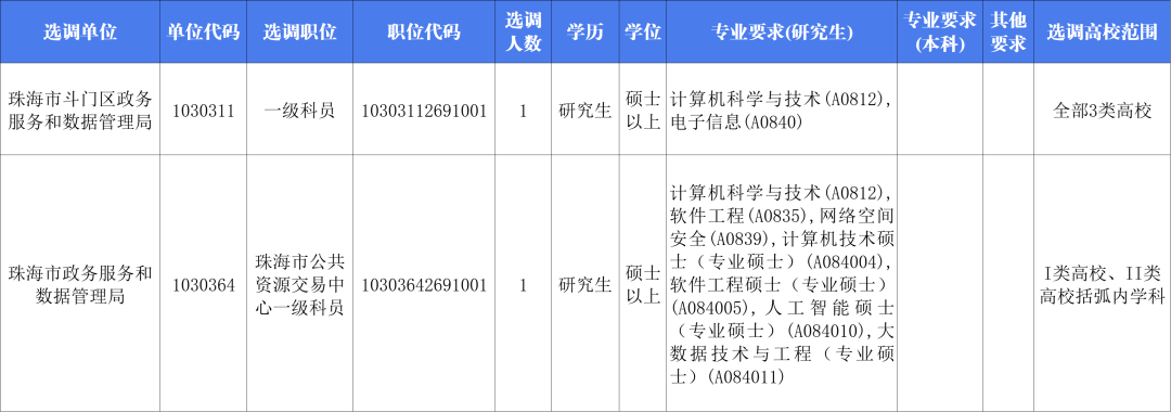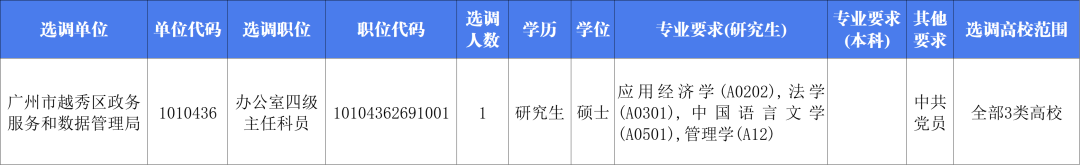 计划选调2名优秀大学毕业生