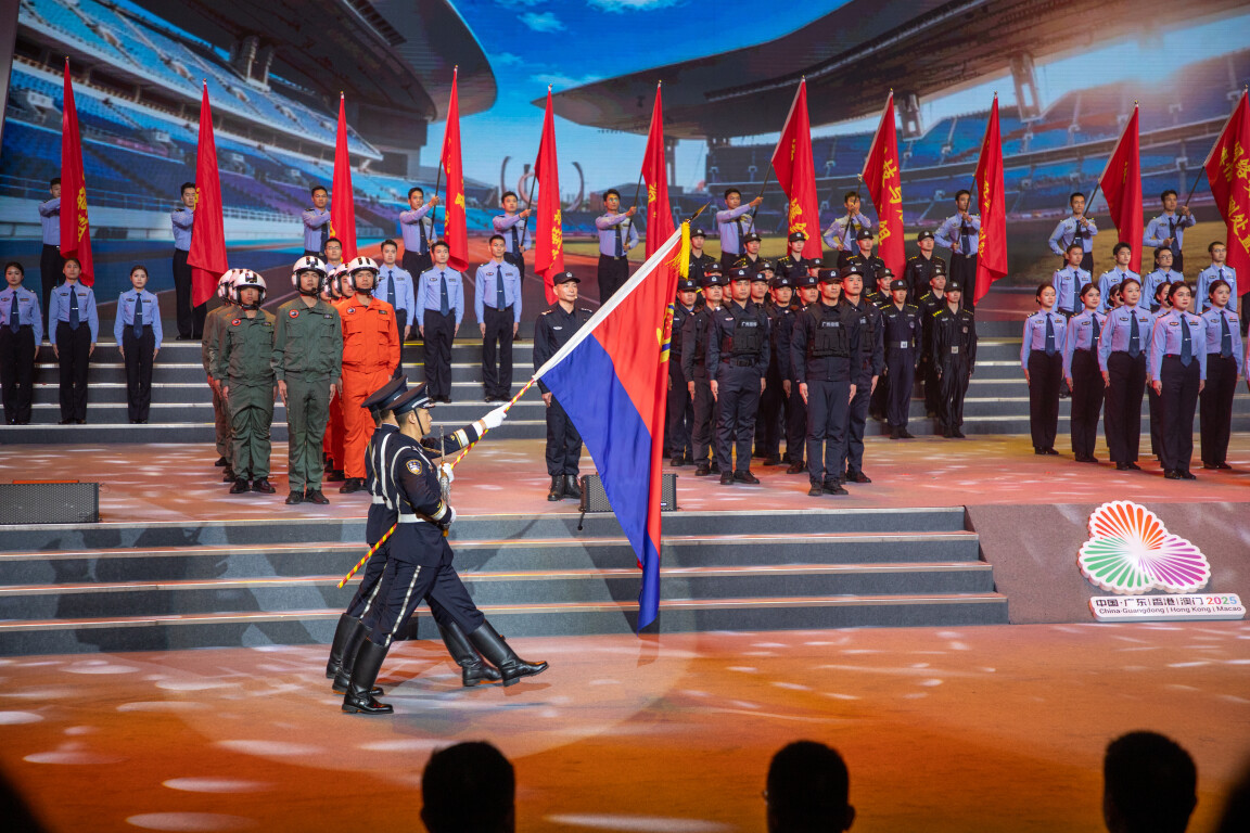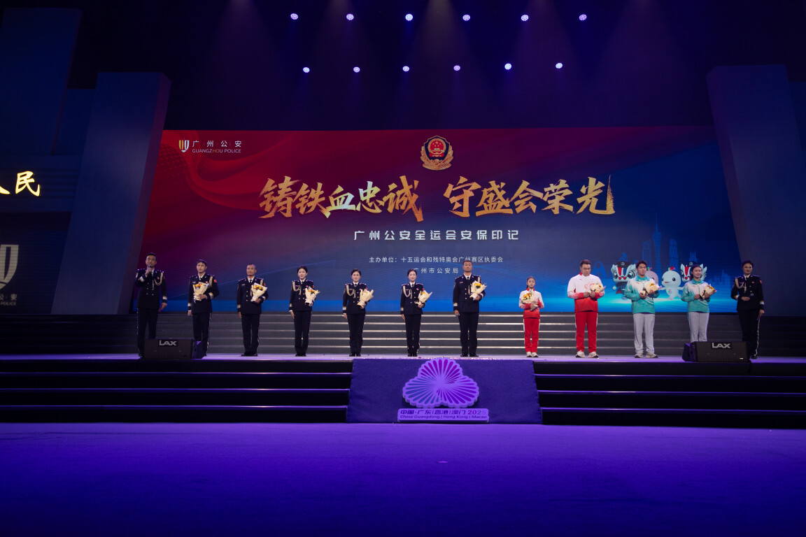 据悉,十五运会和残特奥会期间,广州公安全警动员、日夜坚守,与省市相关单位、环穗6地市公安等多方协同作战,圆满完成安保任务。活动在《中国人民警察警歌》中落下帷幕,进一步激发了全体民警、辅警的责任担当,为后续平安建设工作注入动力。