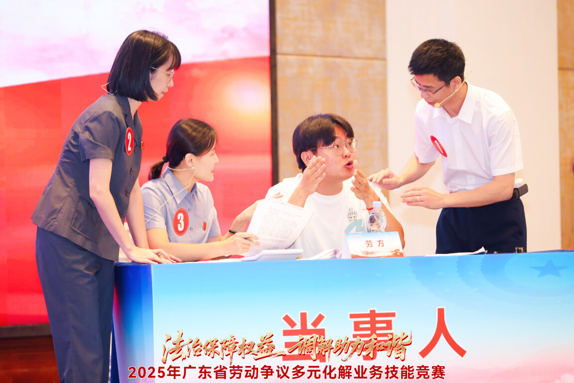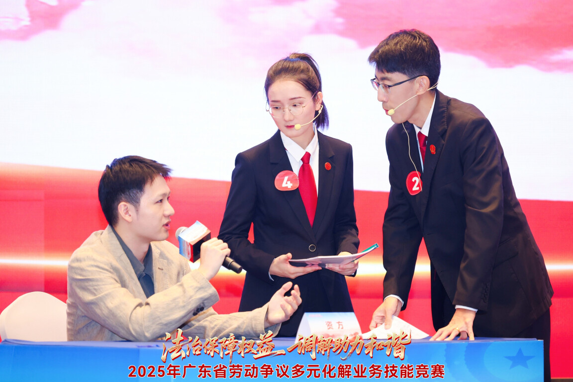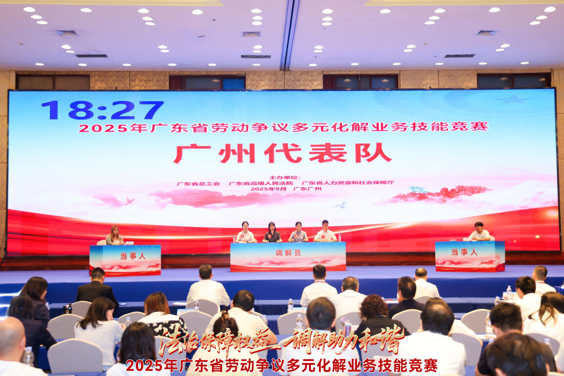 9月16日,2025年广东省劳动争议多元化解业务技能竞赛决赛在广州举行。本次竞赛以“法治保障权益 调解助力和谐”为主题,由省总工会、省高级人民法院、省人力资源社会保障厅联合举办。竞赛立足提升劳动争议多元化解队伍政治素质和专业素养,致力打造“工会+法院+人社”团队合作模式,重点考核劳动争议多元化解团队的政治素养、劳动基础知识、法律应用等调解综合技能技能。