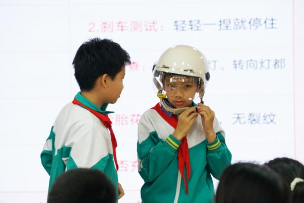 在知识学堂——“安全知识充电站”环节,专业讲师向学生们系统普及了骑行戴头盔的重要性,电动车应该如何正确充电、停放,安全事故应急处置及自我保护等核心知识,为孩子们夯实安全认知基础。