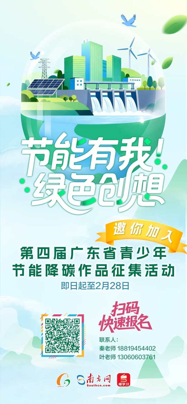 即日起至2月28日,参赛者可通过南方网专题页面(https://economy.southcn.com/node_da7791eee1)或 “粤学习客户端-我的-热门活动”报名。欢迎广大青少年踊跃投稿,用创意践行公益,为绿色发展添力!