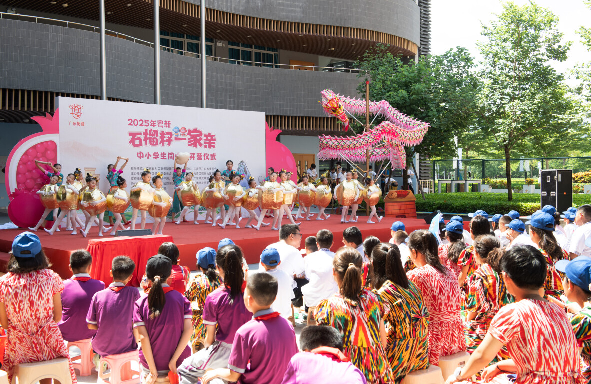 为深入贯彻落实习近平总书记关于新疆工作的重要讲话重要指示批示精神,完整准确全面贯彻新时代党的治疆方略,落实第十次全国对口支援新疆工作会议部署,深入开展“祖国情•中华行”研学活动,全面推进粤新青少年交往交流交融,铸牢中华民族共同体意识,8月12日上午,广东援疆2025年粤新“石榴籽一家亲”中小学生同心营开营仪式在肇庆市青少年宫红领巾广场举行,近200名来自新疆喀什的中小学生和肇庆市的中小学生齐聚广东肇庆,以民俗为桥、以文化为媒,共同开启一段跨越万里的友谊之旅。