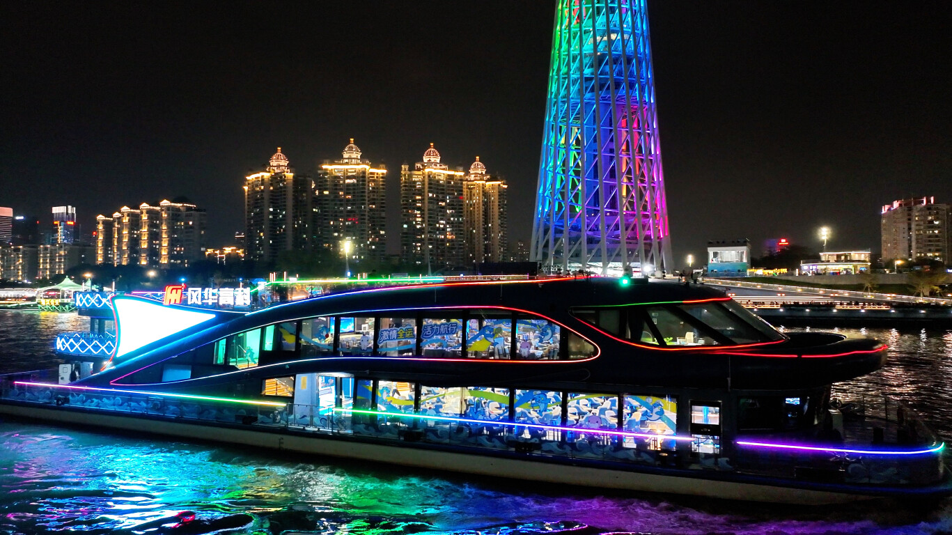 珠江夜景中,港航集团琶洲港澳客运码头、南沙客运港、蓝海豚游船公司推出赛事优惠措施,披上十五运会主题“新装”的游船成为一道流动的风景。在赛事期间还同步开通香港水上的士西九渡轮航线,并面向公众派发3000张免费成人船票与1000张宠物船票,以实实在在的惠民举措,邀请广大群众共襄体育文化盛宴。