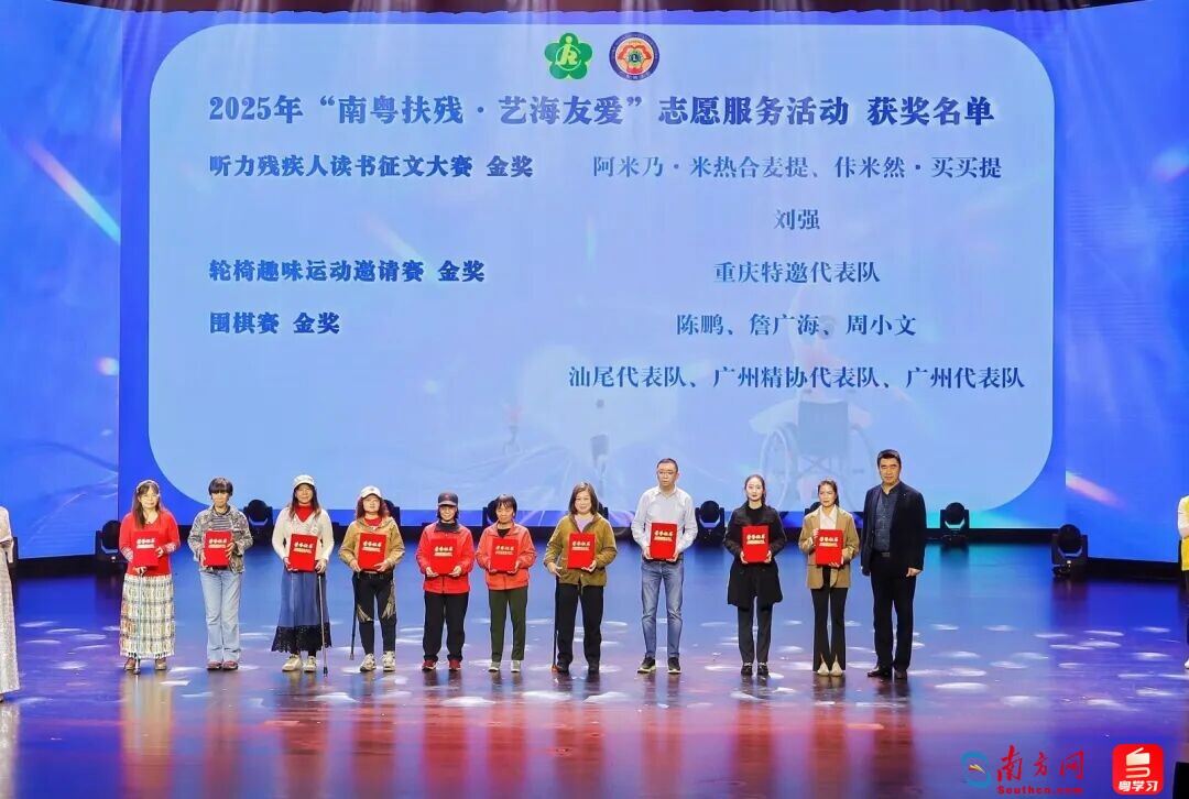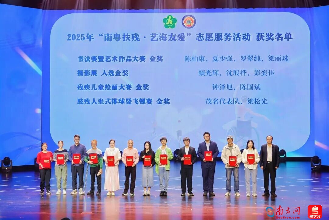 今年是“南粤扶残・艺海友爱”启动的第五年。活动还展播了广东省助残工作主题宣传片,视频系统呈现了广东省2025年助残工作的丰硕成果,传递了“残健共融、文体并举”的核心理念。自2020年5月启动以来,“南粤扶残・艺海友爱”志愿服务已累计开展各类文化、艺术、体育活动超500场,投入经费逾千万元,惠及残疾人超过8万人次,2024年,被中国残联评选为残疾人文化品牌活动典型案例,荣获广东省志愿服务工作协调小组评选的广东省最佳志愿服务项目殊荣。