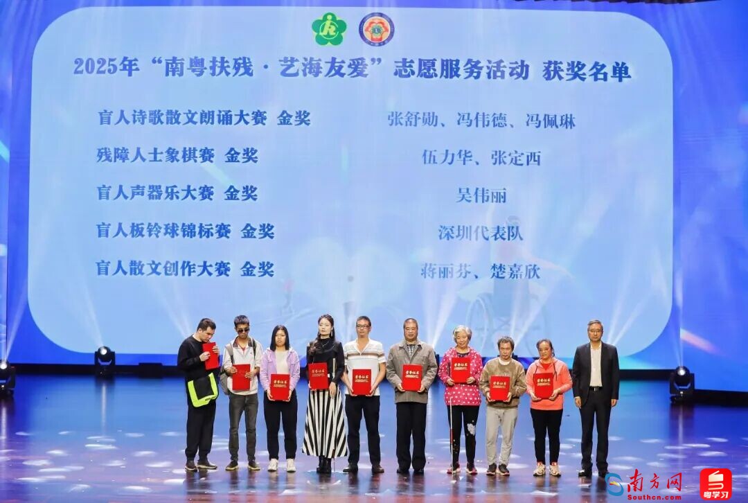 活动期间还举行了表彰仪式,为在书画摄影展、诗歌朗诵、棋牌比赛等赛事中表现优异的残疾人选手颁发艺术类与体育赛事类奖项。广东狮子会、广州市残疾人联合会及省残联五大专门协会获颁“南粤扶残・艺海友爱”优秀组织单位奖。