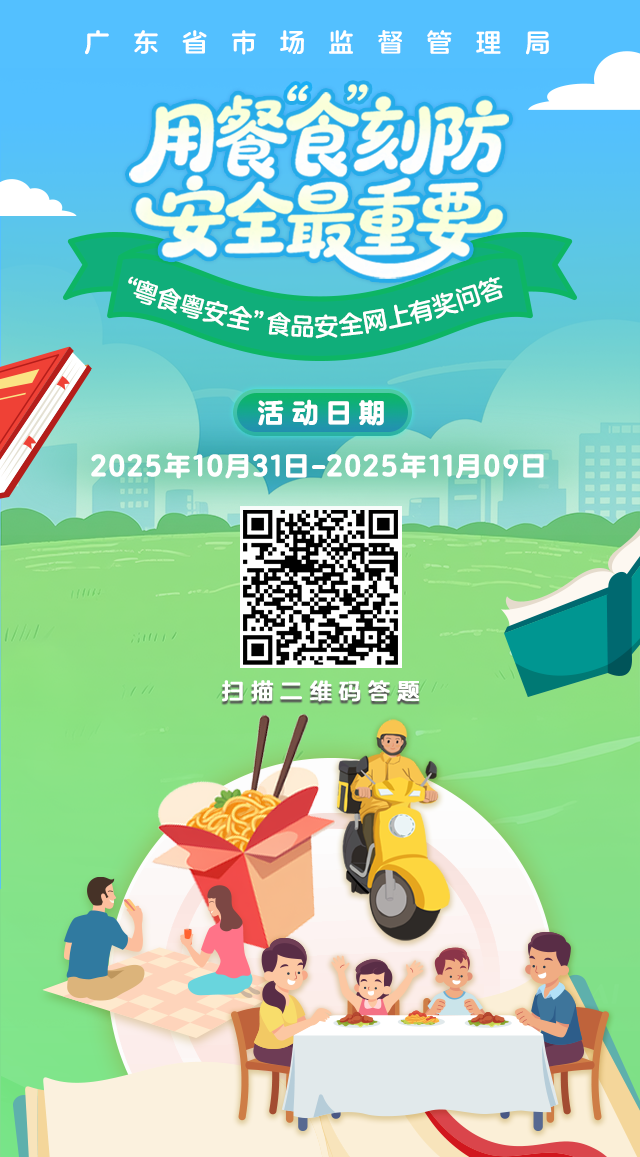 由广东省市场监督管理局指导,南方新闻网承办的2025年“粤食粤安全”食品安全网上有奖问答(第二期)以“用餐‘食’刻防,安全最重要”为主题,于2025年10月31日至11月9日火热开启!