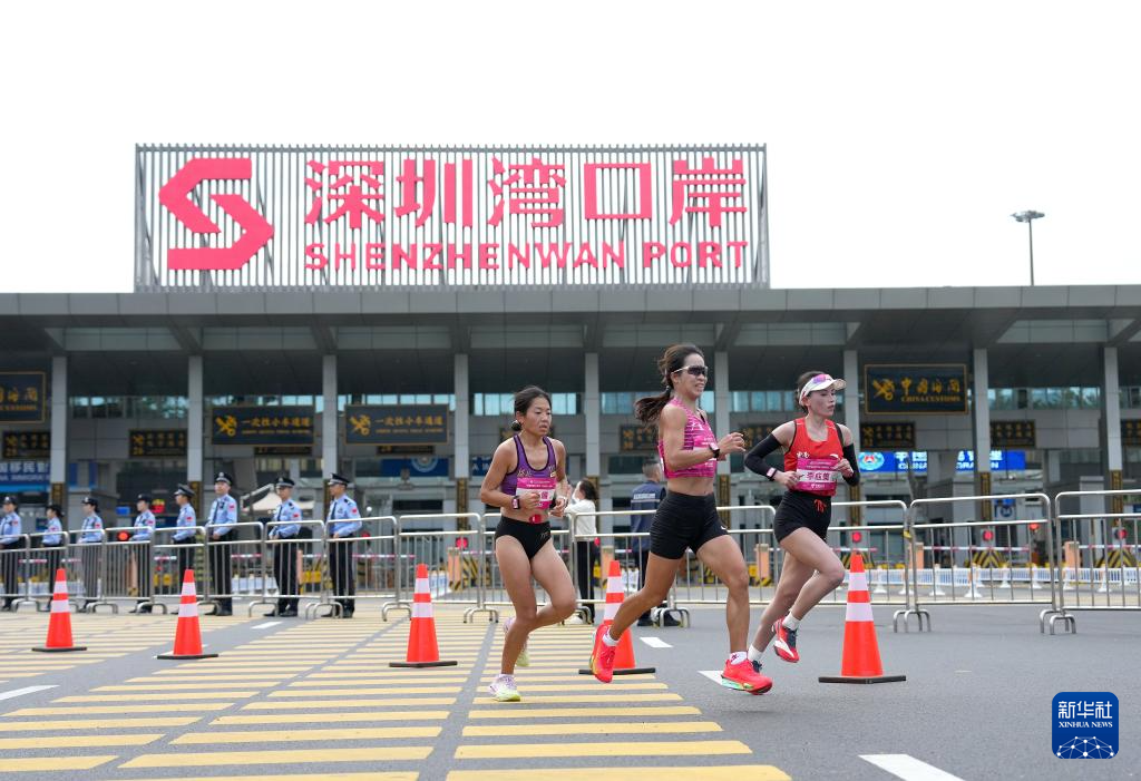 十五运会马拉松项目是全运会历史上首场跨境马拉松赛事,运动员从起跑到完赛,其生物特征与实时位置数据已与后台系统同步融合,比赛参赛选手无需改变自己的节奏,在奔跑中便完成了跨境通关。图为十五运会女子马拉松比赛参赛选手经过深圳湾口岸。