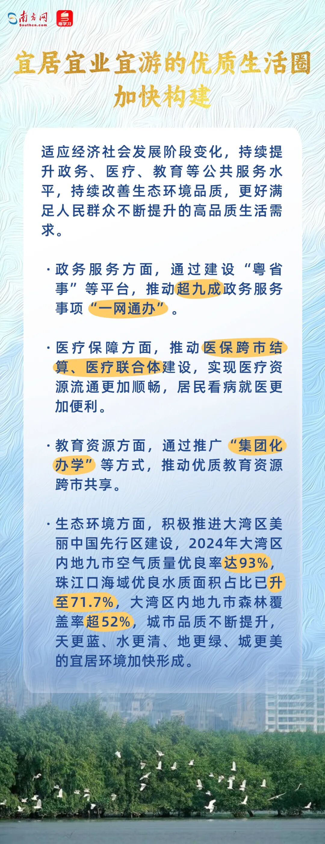 4日下午,广东省人大常委会举行新闻发布会,介绍《决定》的主要内容及大湾区内地九市内涵式高质量发展情况。省发展改革委副主任、省大湾区办常务副主任朱伟在会上介绍,2024年大湾区内地九市GDP总量达到11.54万亿元,经济总量占全省八成以上,支撑广东连续36年经济规模稳居全国首位,为广东乃至全国高质量发展作出了积极贡献。