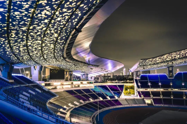 与此同时,在十五运开幕式主场馆——广东奥林匹克体育中心,洲明科技还提供了LED端屏、立柱屏及专业照明灯具,形成一体化光显解决方案。