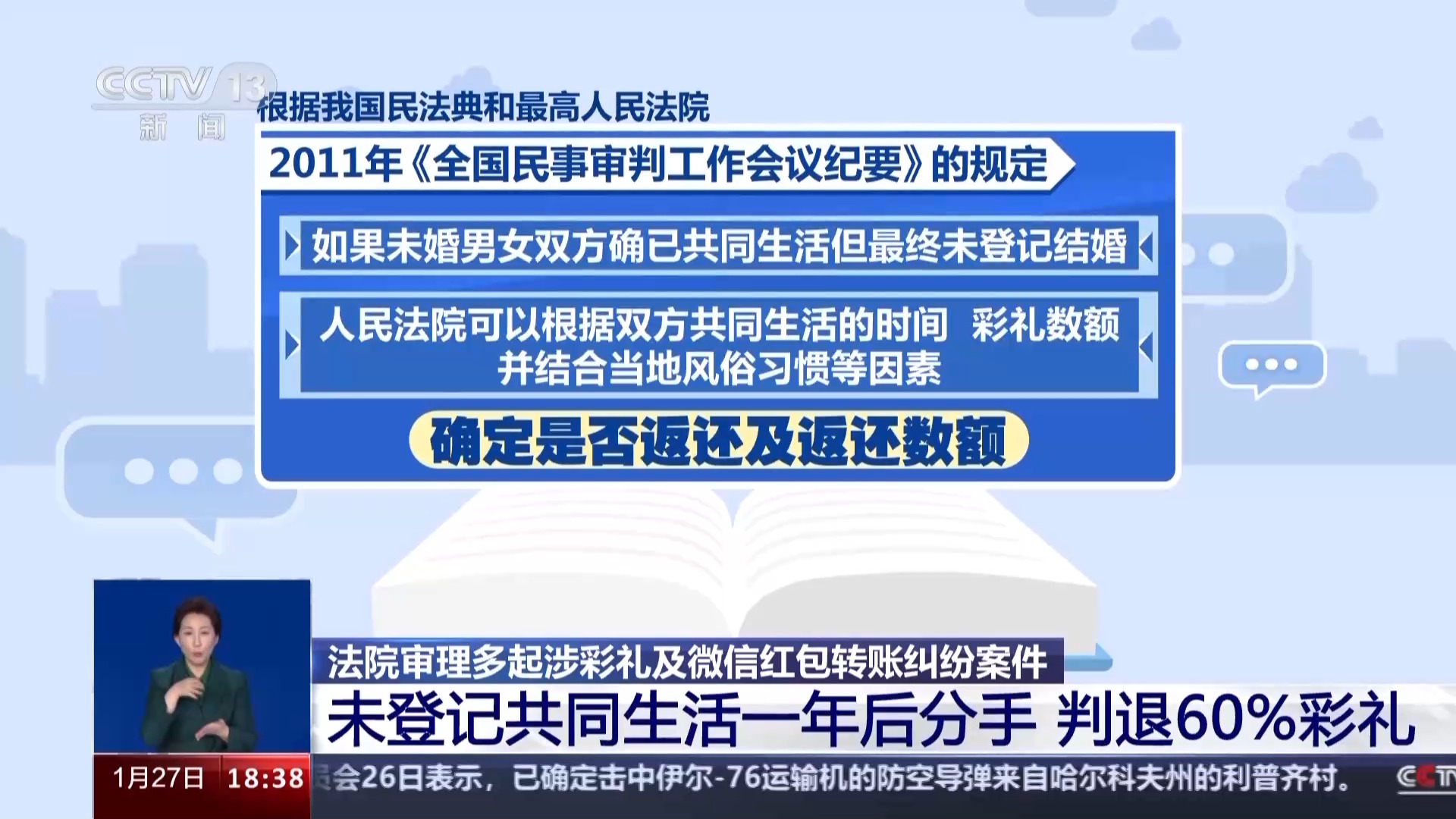北京市通州区人民法院法官 秦玲:本案当中虽然双方没有办理结婚登记手续,但是双方确实是实际上共同生活了一段时间,根据女方的举证也可以认定,女方在共同生活期间负担了大部分的生活开销。所以综合考量判决女方返还部分的彩礼,这个案例也是符合最高人民法院最新的司法解释的相关规定的。