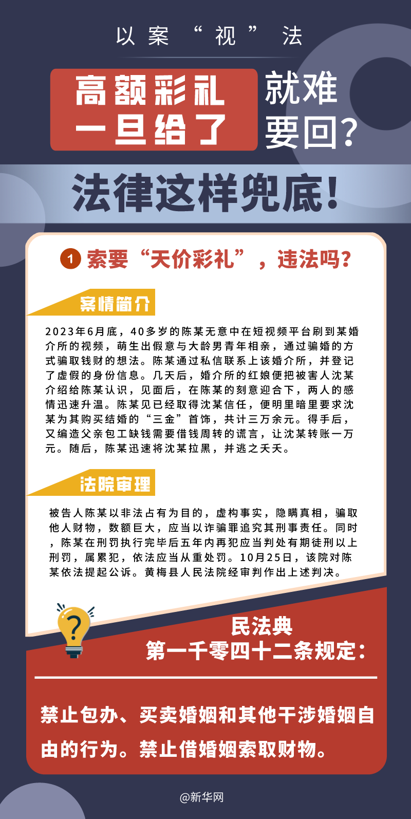 “五一”长假期间,各地迎来了婚礼高峰期,“彩礼”话题,尤其农村高额彩礼现象备受关注。破解高价彩礼,在解决争议的层面,司法尽了最大努力兜底。本期《以案“视”法》针对涉“高额彩礼”纠纷,带大家学习相关法律知识。
