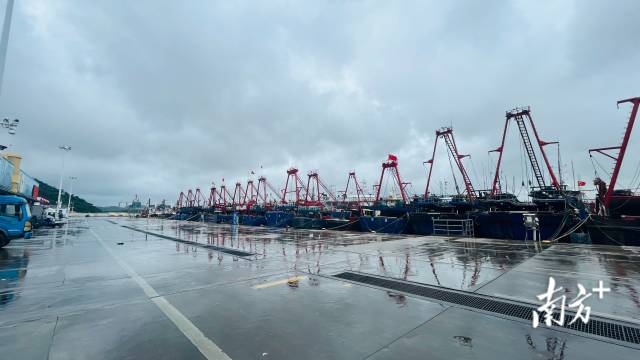 “整夜都没有睡,随时要查看缆绳固定情况。”2日早上9时许,笔者在洪湾中心渔港见到渔民霍永潜时,他刚刚检查完船身和绳索。这艘长约20米、宽约5米的渔船是霍永潜的谋生家当,也是他的“老伙计”,陪伴他出海捕鱼许多年了。