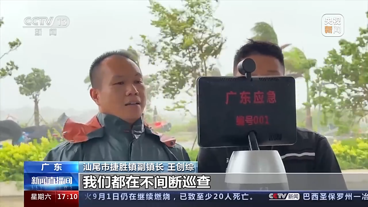 汕尾市捷胜镇副镇长 王创综:我们都在不间断地巡查,我们应急小分队都在保证自身安全的情况下,都会在通过监控也好,在野外巡查也好,都会关注着我们的社会动态,确保人民群众生命财产安全,我们的渔民都上岸。