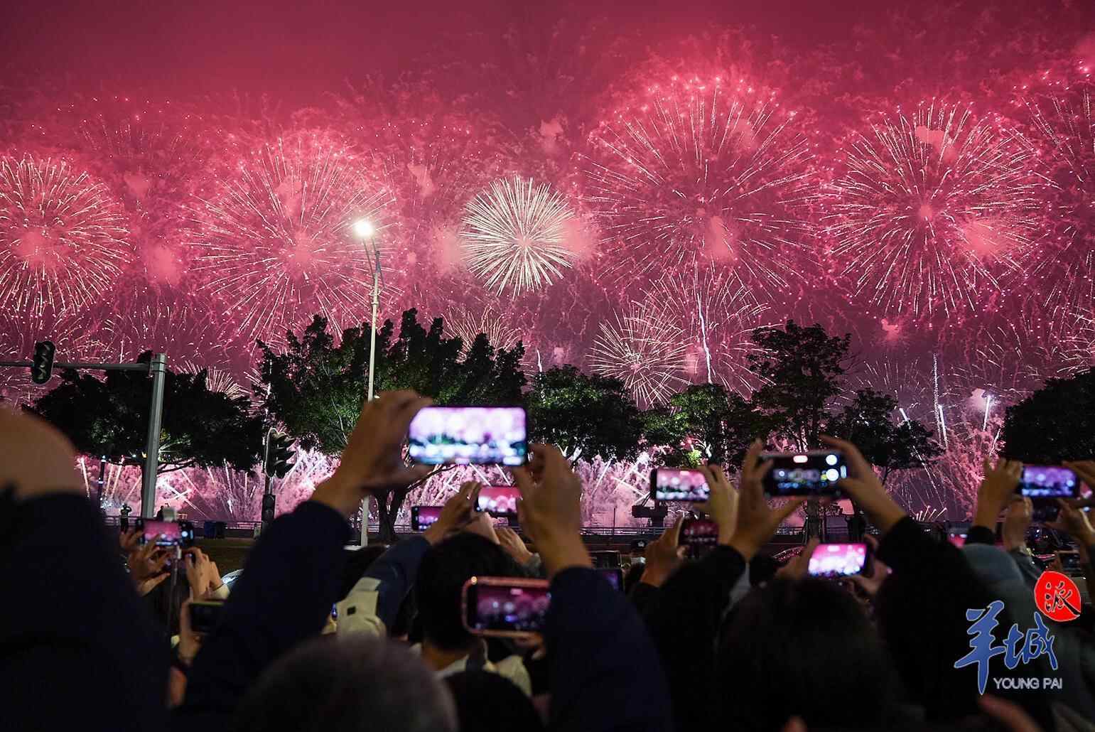 高空烟花、中空烟花、水面烟花等各式烟花在空中缤纷绽放,科技感十足的无人机编排成多种图案,让汕头更显流光溢彩、绚烂夺目。1月23日晚8时,在内海湾粮食码头对开海面,汕头举行迎春大型焰火晚会。在市民的一声声欢呼中,无数烟花冲上苍穹。