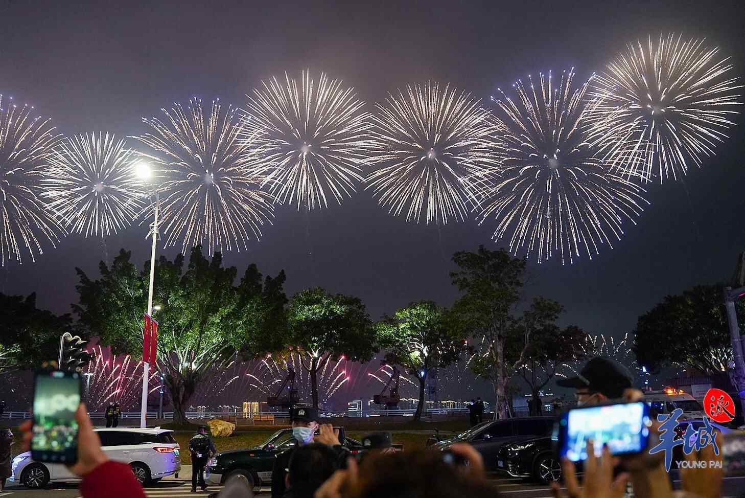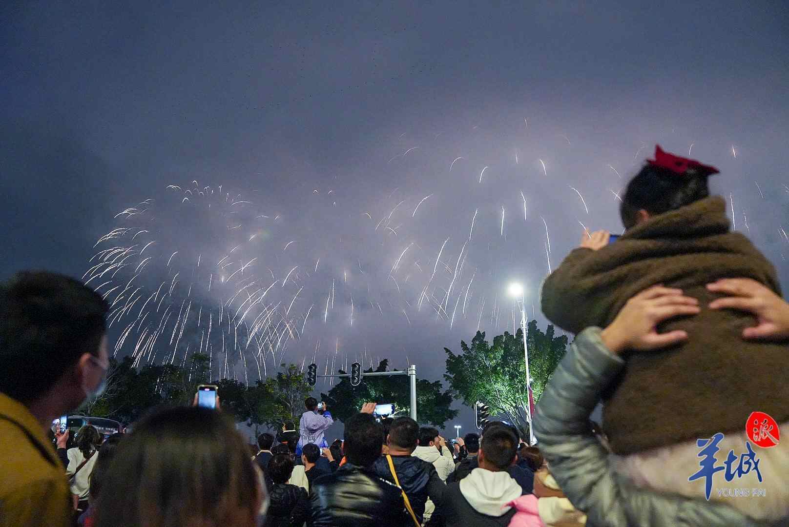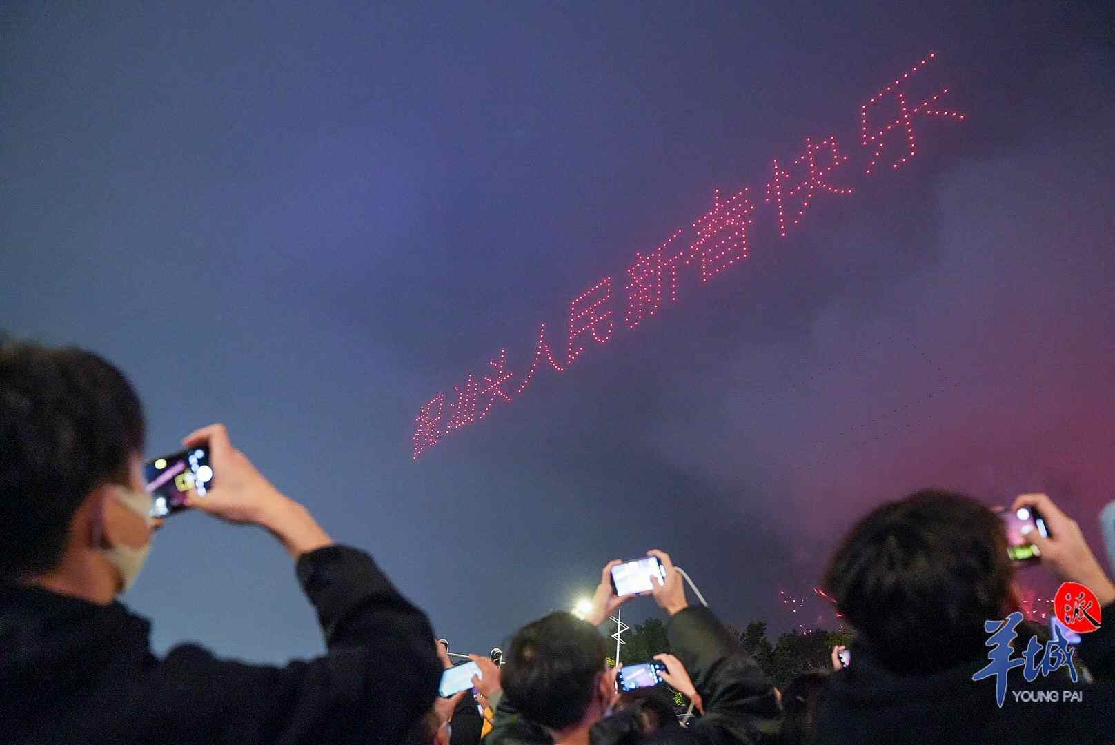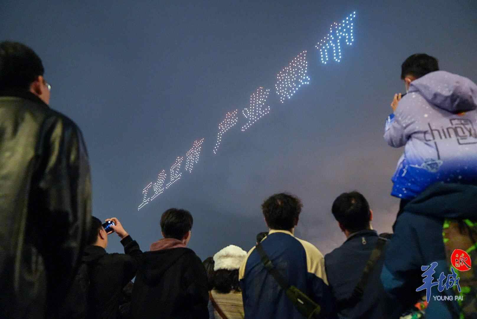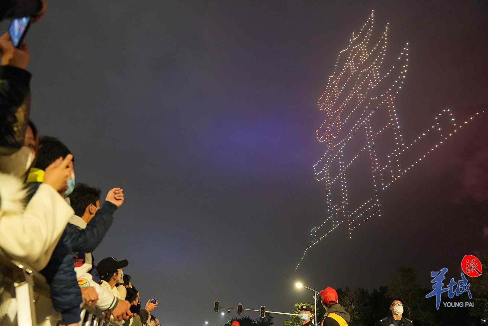 晚上8时整,在汕头夜空中出现一幅小孩用香烛点燃鞭炮的无人机图样,随着鞭炮点燃,2023癸卯新年的迎春大型焰火晚会正式拉开序幕。