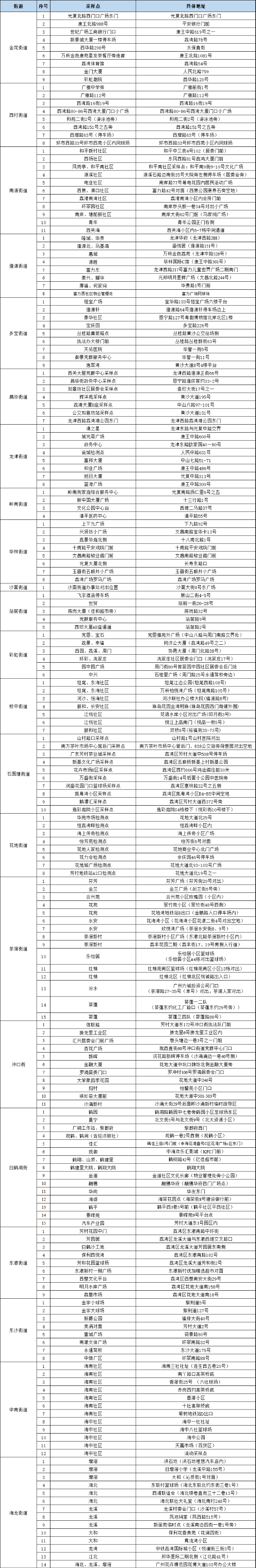 广州市荔湾区各街道核酸检测临时采样点